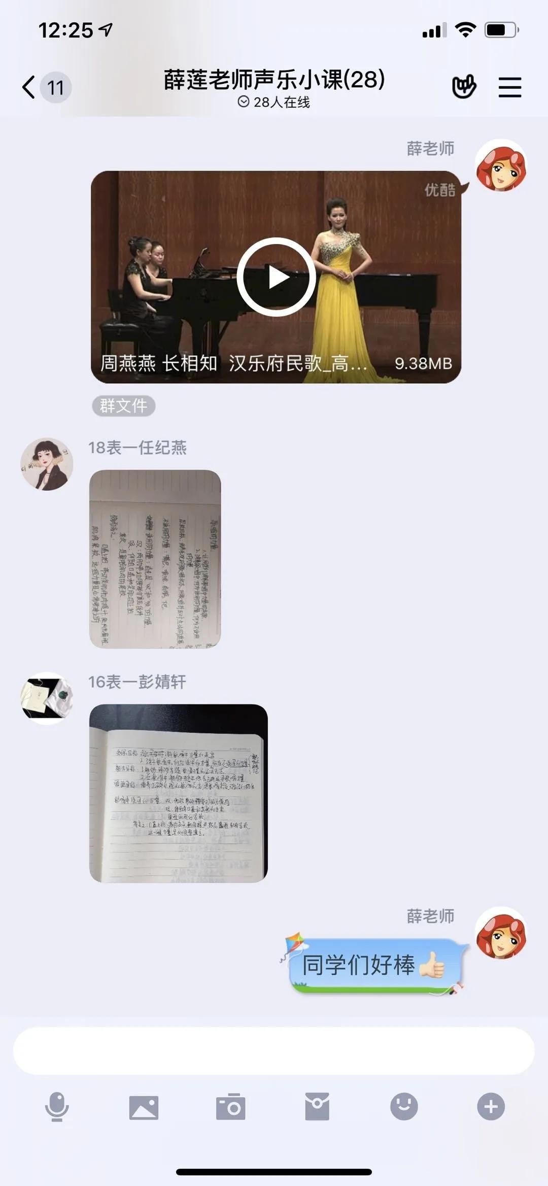 鉴于声乐教学的实践性,薛老师结合课上所教授的演唱曲目,进行视频录制,结合学生演唱进行对比教学。通过老师的在线视频指导,学生学习积极性都有了很大的提高。