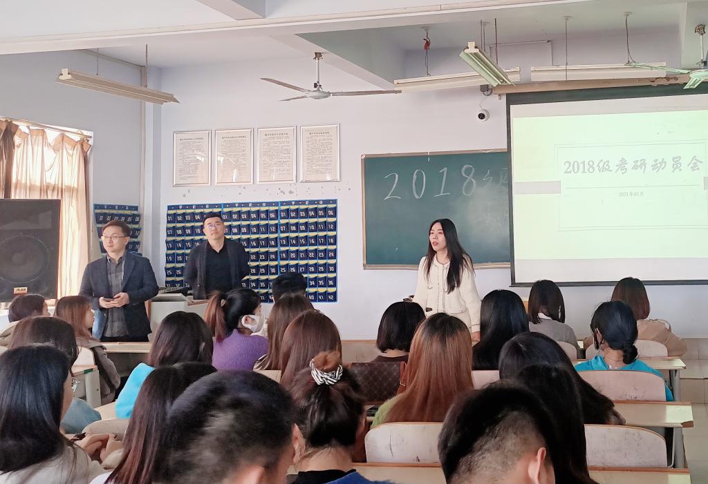 3月25日,英国正版365首页在三楼多媒体教室开展2018级学生考研动员会。实践中心主任马锡骞、教研室主任徐琦、2018级辅导员李曼宁及全体2018级学生参加会议。