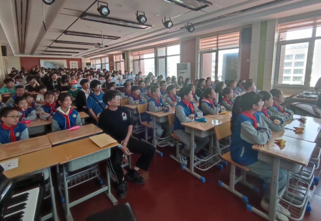 观摩课堂上,授课教师用PPT演示了歌曲,栩栩如生的动画风格受到了同学们的一致好评,随后教师带领学生们进行集体的才艺展示。