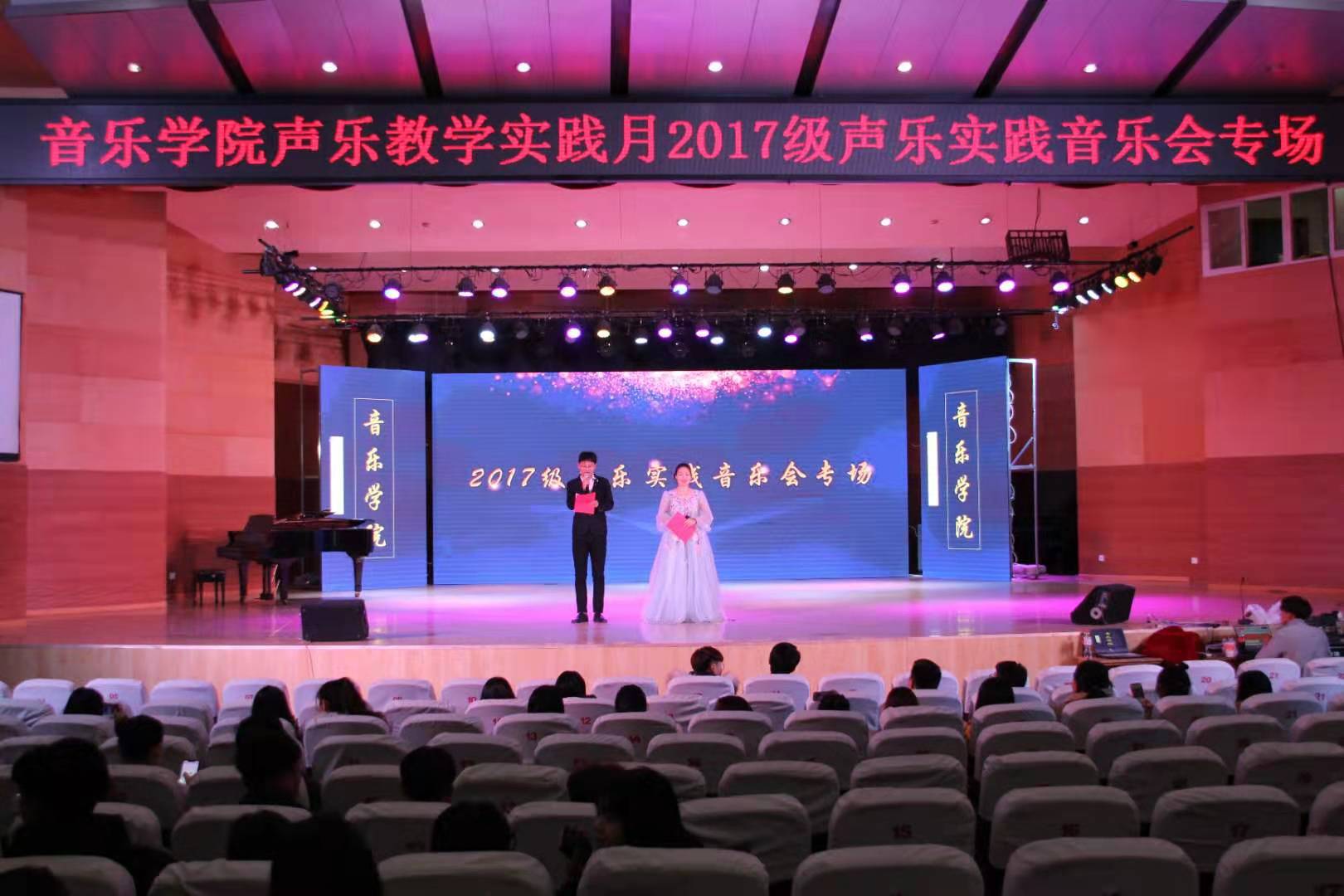 此次音乐会是声乐教研室教学实践月活动的第二场音乐会,对于2017级学生来讲,同时也是他们本学期新加入声乐实践课程的一次课程展示。