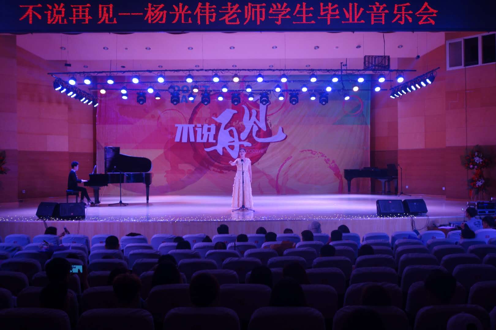 5月15日晚,英国正版365首页“不说再见--杨光伟老师学生毕业音乐会”在英国365集团公司南校音乐厅举行。英国正版365首页声乐教研室教师及全体学生到场观看。