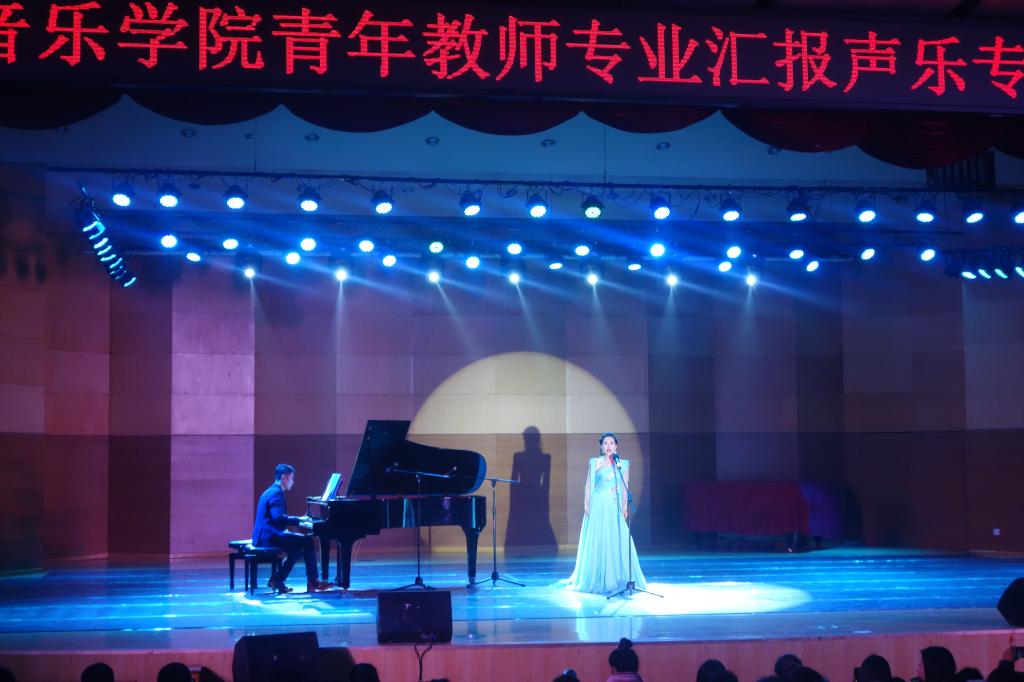 本场音乐会由“古曲”、“创作歌曲”、“外国咏叹调及意大利歌曲”三部分组成。音乐会随着杜乡老师演唱的《关雎》拉开了序幕,其高超的演唱水平使同学们深刻的感受到了古曲的魅力;接下来,由杨光伟、梁娜、李静等老师演唱的一些脍炙人口的“创作歌曲”——《芦花》、《拾彩贝》、《古老的歌》、《军营飞来一只百灵》等歌曲将全场气氛推至高潮,观众掌声不断;最后,由吴丽老师、梁娜老师、李琛老师演唱的外国咏叹调及意大利歌曲《晴朗的一天》、《每逢节日到来》、《维利亚之歌》使大家深刻的体会到了外国歌曲的魅力,也开阔了视野,为本次音乐会画上了圆满的句号。
