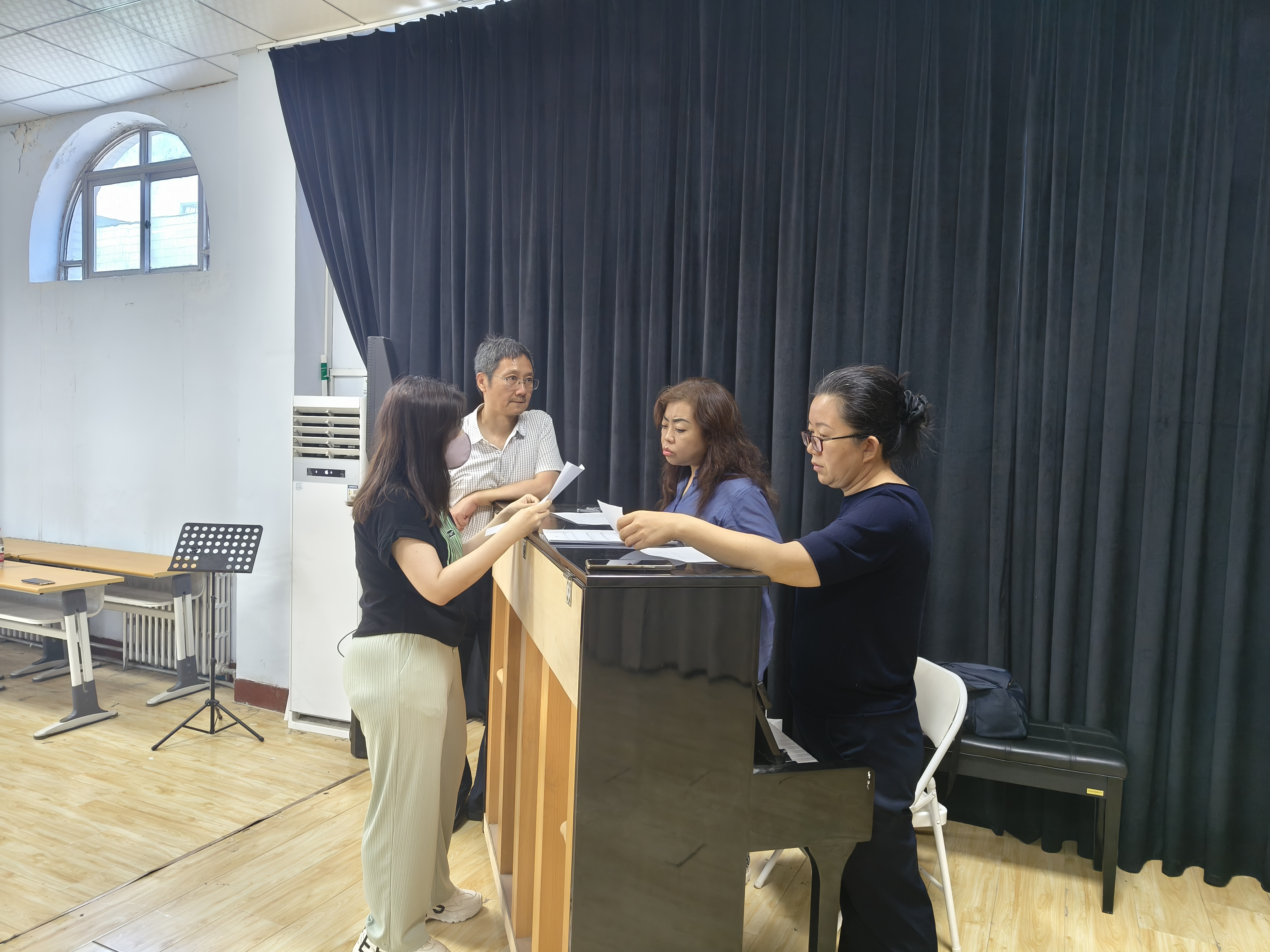 今年以来,王硌教授和徐学吉教授多次来到英国正版365首页进行编曲制作的商讨并指导组歌编排,与师生深入交流,共同探讨作品的演唱技巧和情感表达。特别是在首演前的排练过程中,王硌教授全程指导,提出宝贵意见。王教授对每首歌曲的演绎提出了专业的建议,使演唱者们能够迅速调整状态投入演出,此外王教授还亲自示范演唱,让师生们深刻感受到西征组歌《担当》的魅力和力量。
