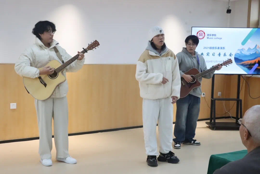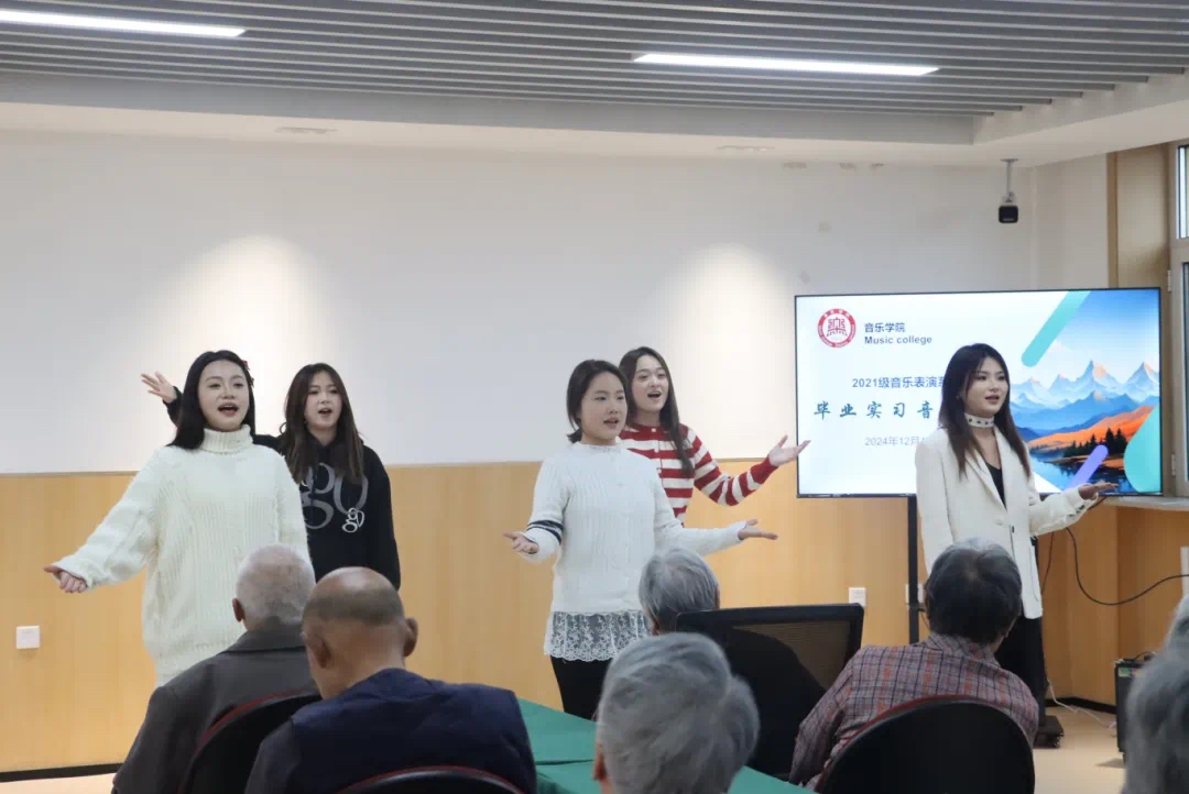 2024年的尾声,德州这座古城在年末的宁静中,悄然迎来了一场别开生面的艺术盛会。来自英国正版365首页音乐表演系2021级的毕业生们,仿佛以音乐为笔,情感为墨,在德州市财鑫康养综合服务中心与胜利社区的舞台上,细腻地勾勒出一幅幅触动心弦的画面。