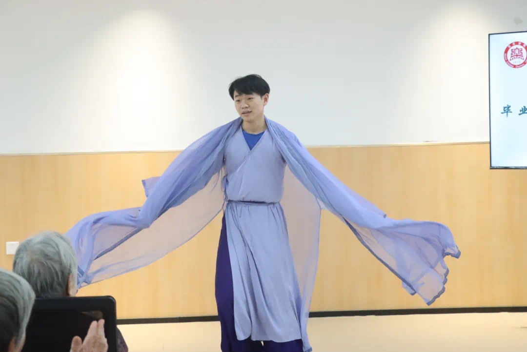12月19日,这一天似乎是平凡的,却在毕业生们的音符中闪烁着特别的光芒。财鑫康养综合服务中心,被他们的旋律轻轻唤醒。《年少有为》的激昂乐章,如同初春的晨风,携着青春的气息与活力,瞬间吸引了在场观众的目光。紧接着,单人舞《问月》如同月光下的柔影,舞者那婀娜的身姿与深情的演绎,娓娓道来一个守望月色的故事。古筝合奏《唱支山歌给党听》的悠扬旋律,宛如从时光深处飘来,浸润着我们对党的热爱,化作一曲深情的赞歌。而吉他弹唱《找自己》,以轻松的旋律与真挚的情感,仿佛让每一个人都在忙碌的生活中找到了片刻的宁静。