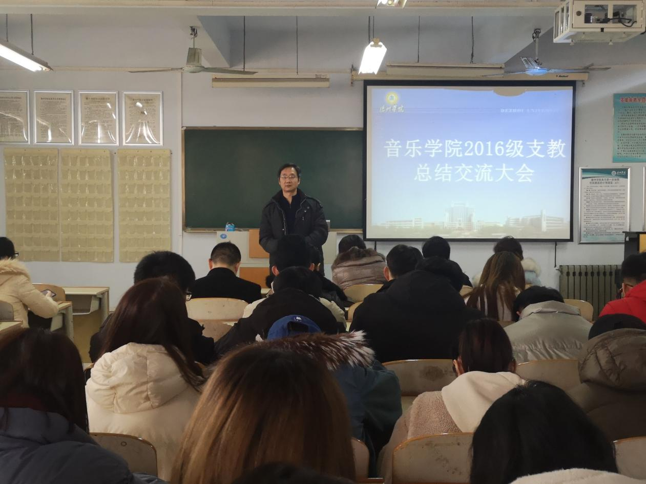 会议伊始,音乐学系系主任杜乡对此次实习支教工作进行了总结,她表示,我院2016级实习支教活动在学院领导的高度重视及各指导老师的相互配合下取得了圆满成功。在支教过程中,同学们充分发扬了吃苦耐劳的精神,不仅出色完成了日常教学任务,还利用自己的专业知识积极服务于当地的音乐基础教育,取得了丰硕成果,并获得了当地教育部门和各支教学校的一致好评。