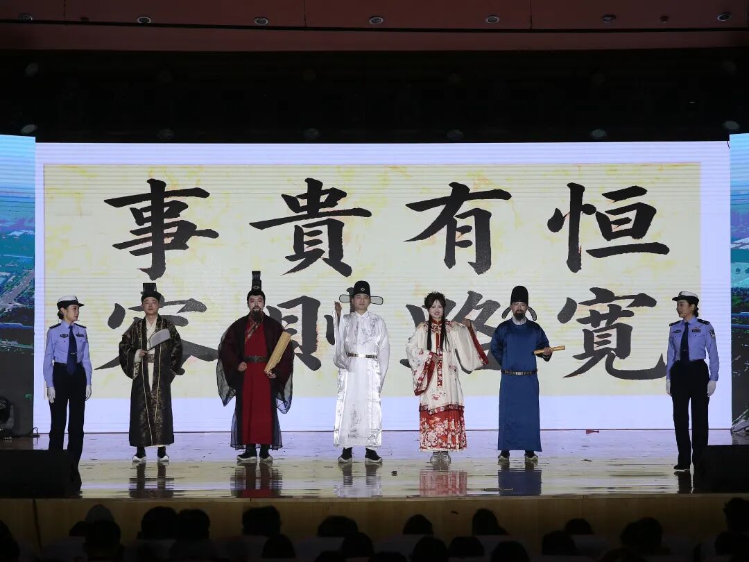 活动现场,我院舞蹈团带来的开场舞《盛世欢歌》点燃了现场的气氛,情景剧《礼行天下・德州先贤话交通》融合传统礼仪与现代交规,民警演绎的说唱舞蹈《平安节拍 爱我中国》以律动传递文明出行理念,情景宣讲《路口》借真实案例敲响安全警钟,小品《中队的故事》用幽默展现交警日常,《如愿》《追寻》等歌曲的精彩演绎,赢得现场观众阵阵掌声。整场活动在我院青年教师龚娇娇、吴振飞与公安民警共同演唱的歌曲《生命至上》中完美落幕。