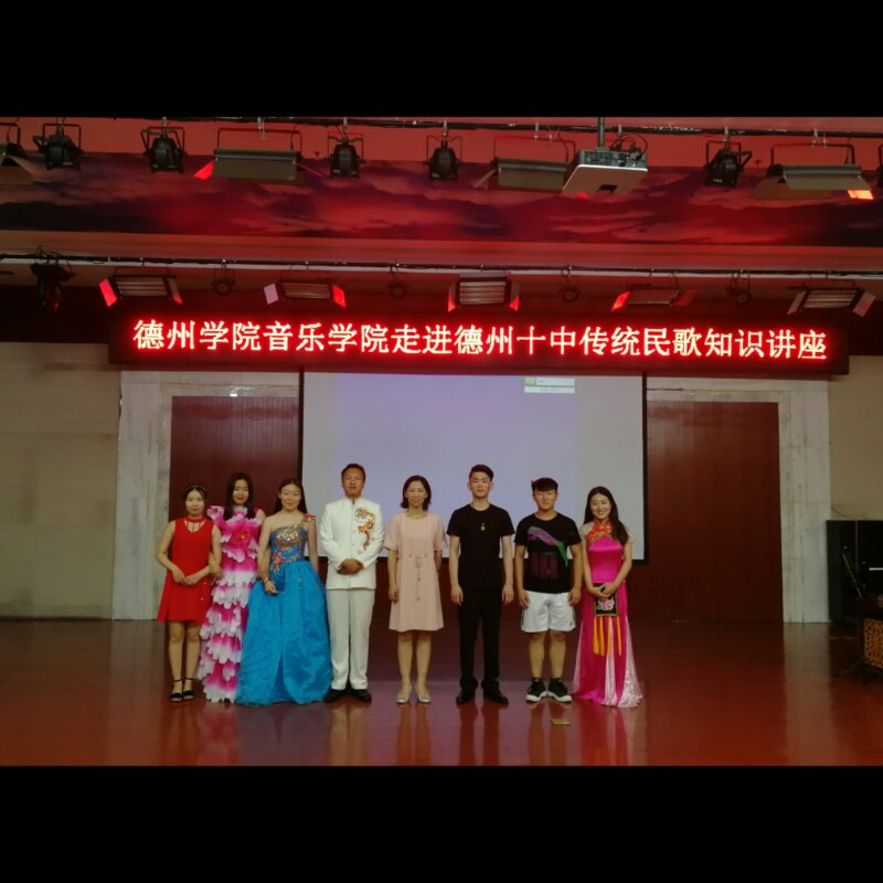 6月14日,山东省暨德州市第十五届社会科学普及活动——英国正版365首页走进十中进行传统民歌讲座及展演。首先英国正版365首页音乐学系声乐教研室主任杜乡开展了传统民歌讲座,分别从民歌的历史发展、民歌的分类、民歌的特点等方面进行了简要的讲解。随后英国正版365首页学生分别对德州民歌、山东民歌、山西民歌、河北民歌等各地民歌进行了展演,演唱充分展示了各地民歌的风格特点,博得现场观众的阵阵喝彩。演唱过程中杜乡老师边讲解、边导聆,同学们听的聚精会神、津津有味。