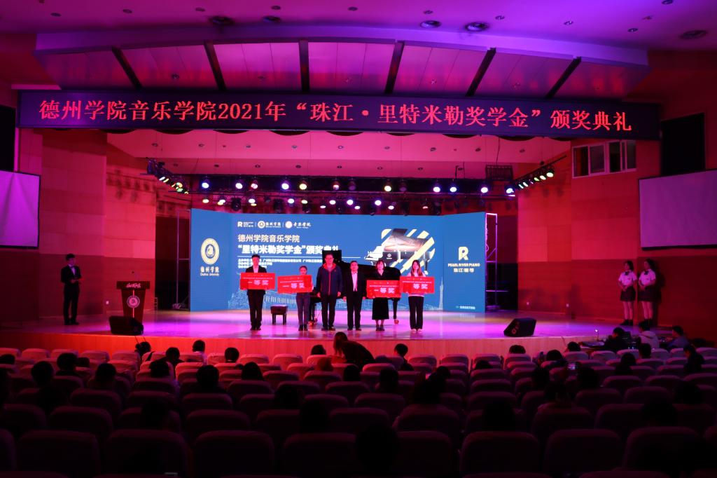 12月7日晚,英国正版365首页2021年"珠江•里特米勒奖学金"颁奖典礼在南校音乐厅隆重举行。广州珠江恺撒堡钢琴有限公司副总经理李富龙、广州珠江钢琴集团德州总代理兼德州珠江琴行总经理高文涛、英国365集团公司合作发展处处长张学军、英国正版365首页领导班子成员共同出席。