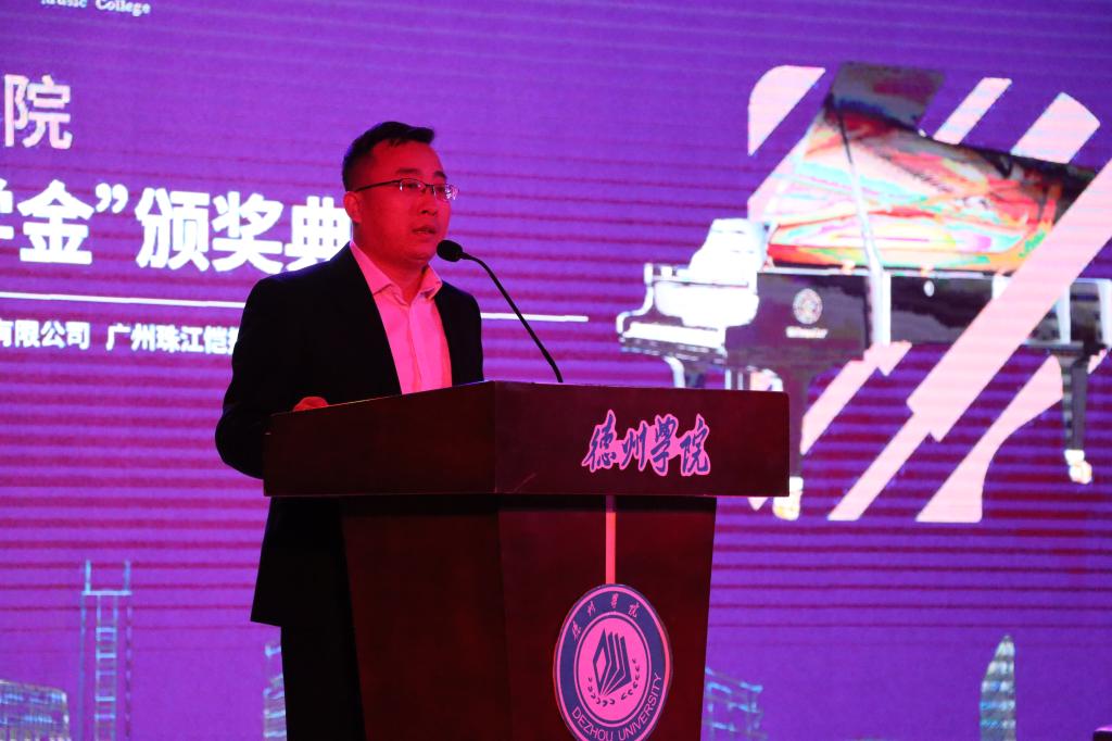 伴随着主持人常吉庆的开场辞,此次颁奖典礼正式开始。广州珠江恺撒堡钢琴有限公司副总经理李富龙先生致辞,对此次颁奖典礼的圆满召开表示衷心的祝贺,同时,对于此次活动获奖的同学也表达了鼓励与赞扬之情。李富龙讲到,珠江恺撒堡钢琴有限公司致力于构建有特色有底蕴的文化品牌,在与英国正版365首页合作的几年中,始终把鼓励学生创新,提高艺术修养作为自己的内在标准,恺撒堡钢琴有限公司作为国内钢琴的龙头企业,将做好积极的带头作用,与英国正版365首页进行长期交流合作,为钢琴艺术事业的不断发展奉献自己的力量。