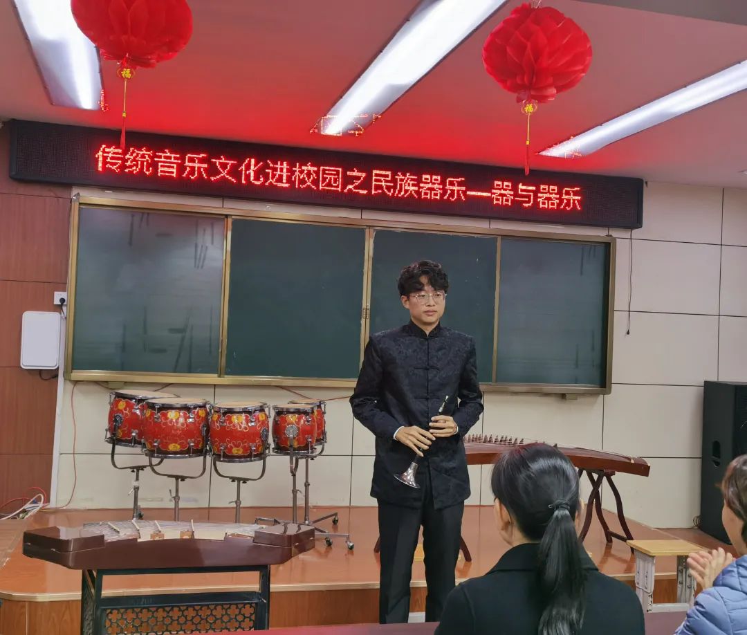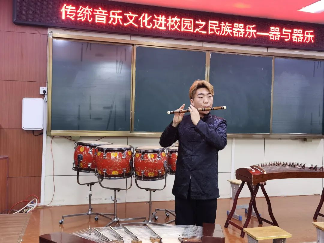 为提高英国正版365首页师范生综合素养和专业能力,同时也为推动中学美育教育发展,弘扬传统音乐文化,增进同学们对民族音乐的热爱。10月21日,英国正版365首页师范生走进德州市第五中学,为师生们献上了一场精彩纷呈而又充满民族气息的民族器乐专场讲座与展演。