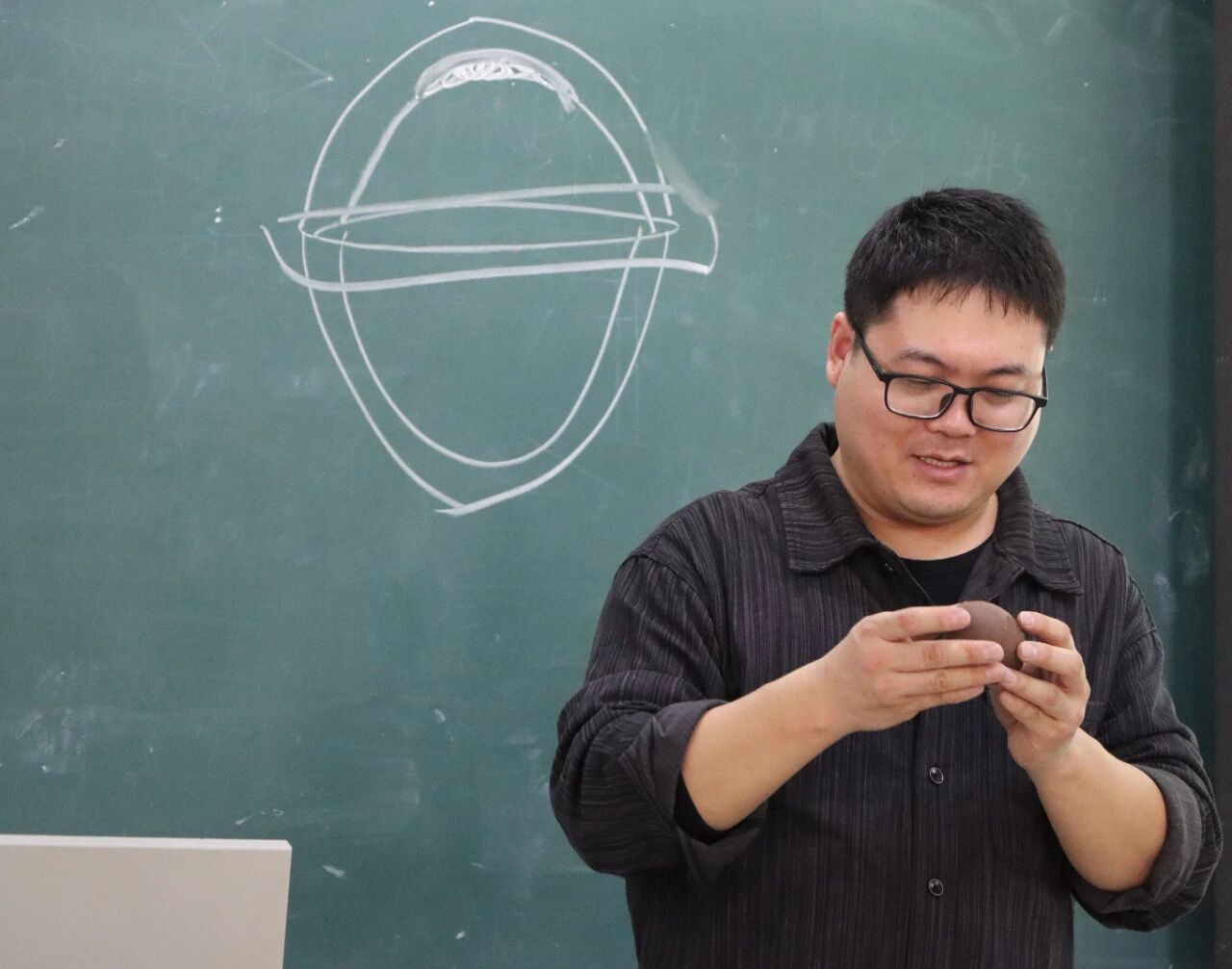 在讲座现场,郑安邦老师带着陶土原料和制作工具,一步步向同学们展示核心技艺。围绕古埙的原料甄选、器型复刻、音准调校等核心技艺展开实操解析,串联“千年乐韵复刻”与“当代匠心传承”的文化脉络。
