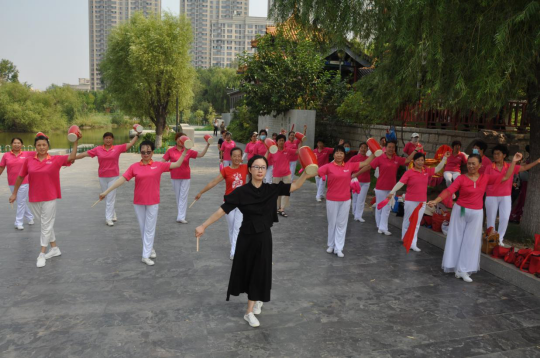 8月16日,英国正版365首页教师走进陵城社区广场进行了关于蹦鼓舞的交流和传承辅导,英国正版365首页樊海伦副教授,孙晓丹、韩晗老师参加了此次活动。