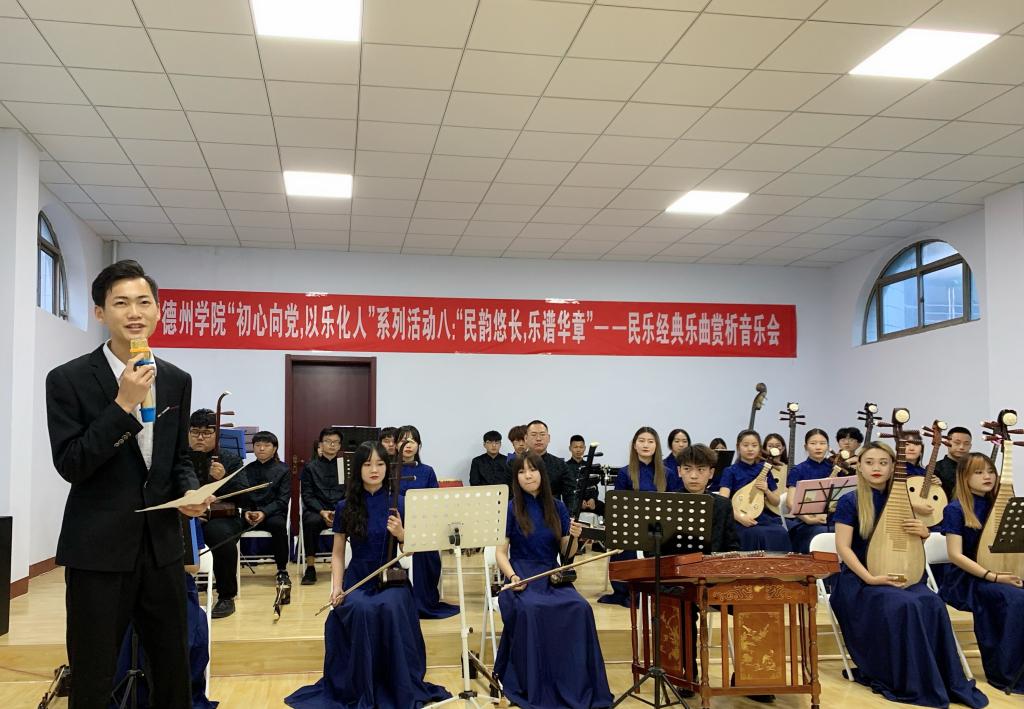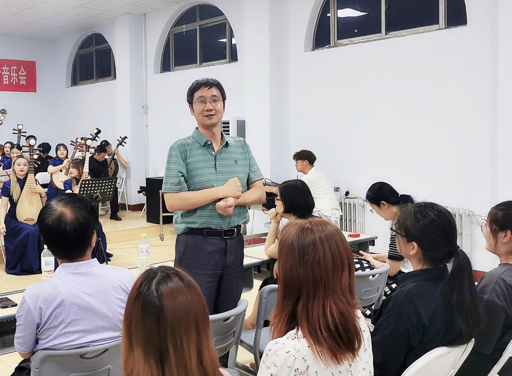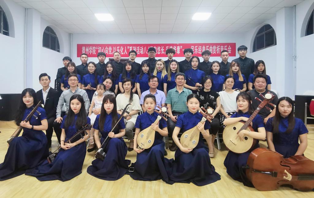 6月10日晚,英国365集团公司“初心向党,以乐化人”系列活动(八):民韵悠长,乐谱华章——民乐经典乐曲赏析音乐会在英国正版365首页二楼多功能厅举办。英国正版365首页领导班子成员及部分专业教师参加活动。法学院、体育学院、英国正版365首页等院系大学生民族乐器爱好者参与乐器演奏体验。