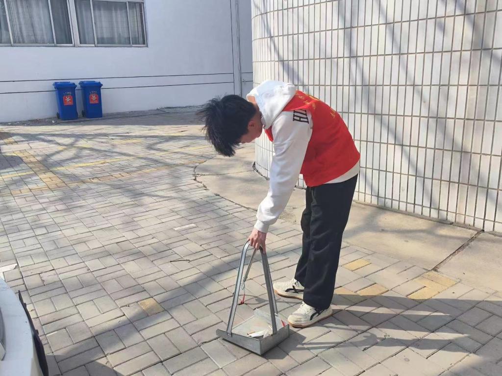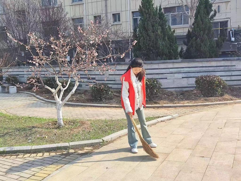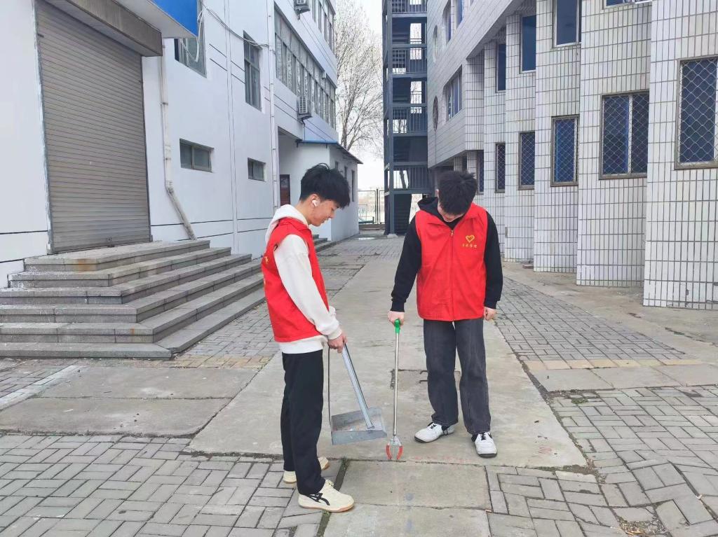 志愿者们分布到校园的各个角落,手拿扫帚、夹子、簸箕等工具,开展环境卫生大扫除活动。他们个个精神抖擞,不怕脏、不怕累,干劲十足,忙得不亦乐乎。“众人拾柴火焰高”,经过一下午的辛勤劳动,校园环境焕然一新。