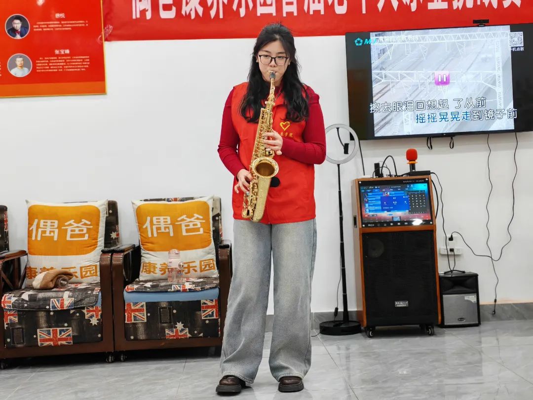 随着优美的音乐旋律,演出在萨克斯独奏《夜上海》中拉开序幕,迅速点燃了大家的热情;快板《三打白骨精》出场,惟妙惟肖的表演,使人身临其境,老人们连连喝彩,纷纷拿出手机记录下精彩瞬间;蒙族舞蹈《故乡》欢快的旋律和热情万分的舞姿,让人意犹未尽;藏族舞蹈,舞姿从容秀丽,流畅的舞步,充满着浓郁的藏族风情;三人合唱《故乡的小路》感情充沛,仿佛回到了爷爷奶奶的童年。老人们也准备了才艺展示,合唱《没有共产党就没有新中国》与广场舞《扇子舞》等。本次活动精彩万分,中间还穿插了党史知识竞赛以及做游戏环节,志愿者们和老人一起做游戏,玩原地踏步走,现场热闹非凡,欢笑连连。