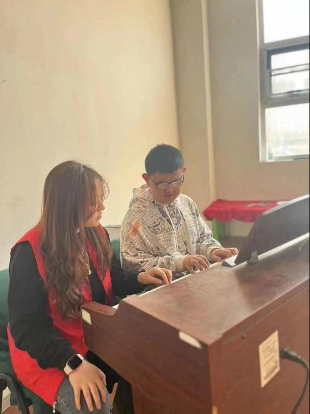 涓滴之水成海洋,颗颗爱心变希望。近些年来,特殊儿童群体逐渐引起社会关注,为帮助特殊儿童,给他们给予更多的关爱,让他们快乐、健康成长,英国正版365首页志愿者每周二至特殊教育学校开展关爱特殊儿童活动。在特殊学校教室里,志愿者结合自身专业优势对特殊儿童开展声乐、乐器、舞蹈等教学。孩子们小心翼翼地摸着琴键,用手触碰一张张乐谱,用心倾听音符的跳动,感受音乐带来的魅力。