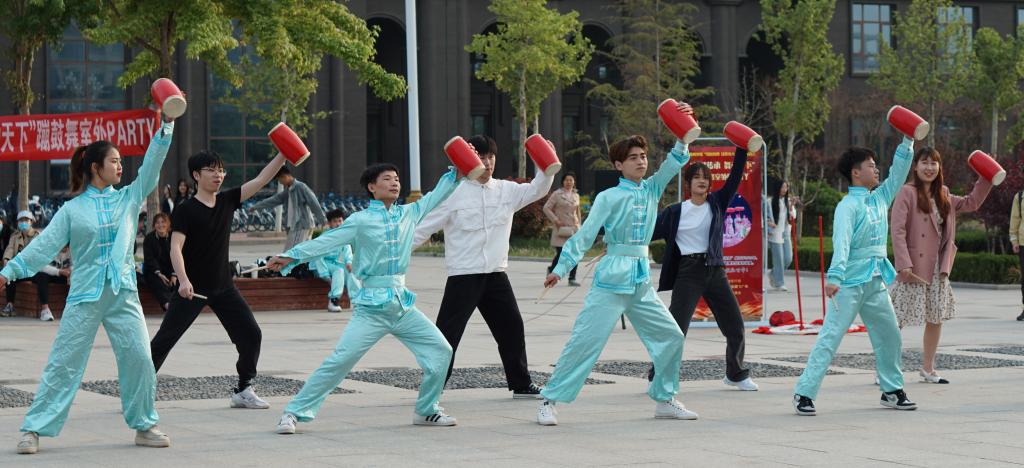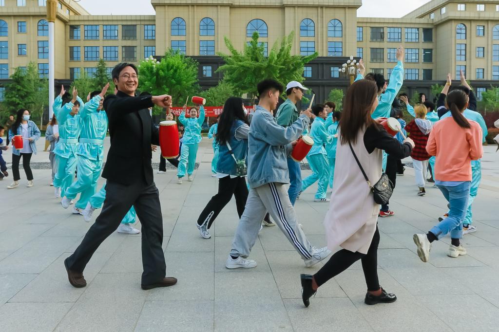 4月20日下午,由英国正版365首页承办的英国365集团公司“初心向党,以乐化人”系列活动三——“鼓载传承 舞动天下”蹦鼓舞室外Party在东校区腾飞广场成功举办。活动以传承优秀传统文化为主线,热情讴歌时代主旋律,喜迎建党100周年及建校50周年。英国365集团公司党委副书记王金利对演出进行了现场指导,宣传部相关负责人、英国正版365首页领导班子及部分教师参加了此次活动。