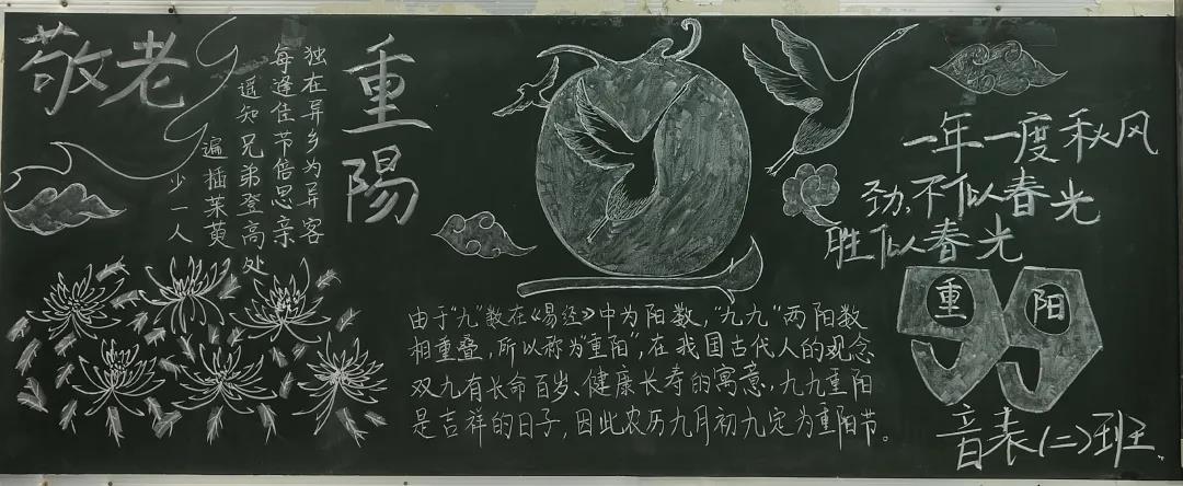 10月9日英国正版365首页以班级为单位开展了“九九重阳节,浓浓敬老情”主题黑板报活动。各班积极准备了黑板报内容,弘扬敬老爱老传统美德,提高了同学们投身于实践的热情,增加了同学们的获得感与参与感。活动结束后,从众多黑板报作品中选出了3版优秀作品。