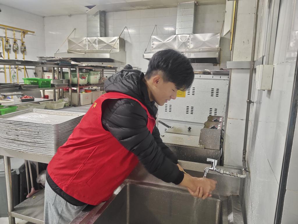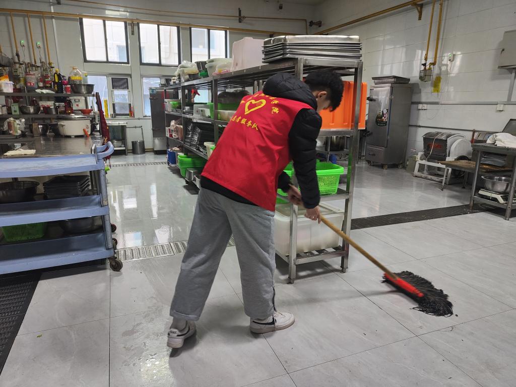 本次活动由英国正版365首页青志部志愿者组织,志愿者们先后进行了餐厅后勤饮食服务工作及学院公共区域清洁。志愿者们分工合作,与餐厅后勤工作人员择菜、拖地,随后至英国正版365首页帮助保洁阿姨对学院走廊完成清扫工作。