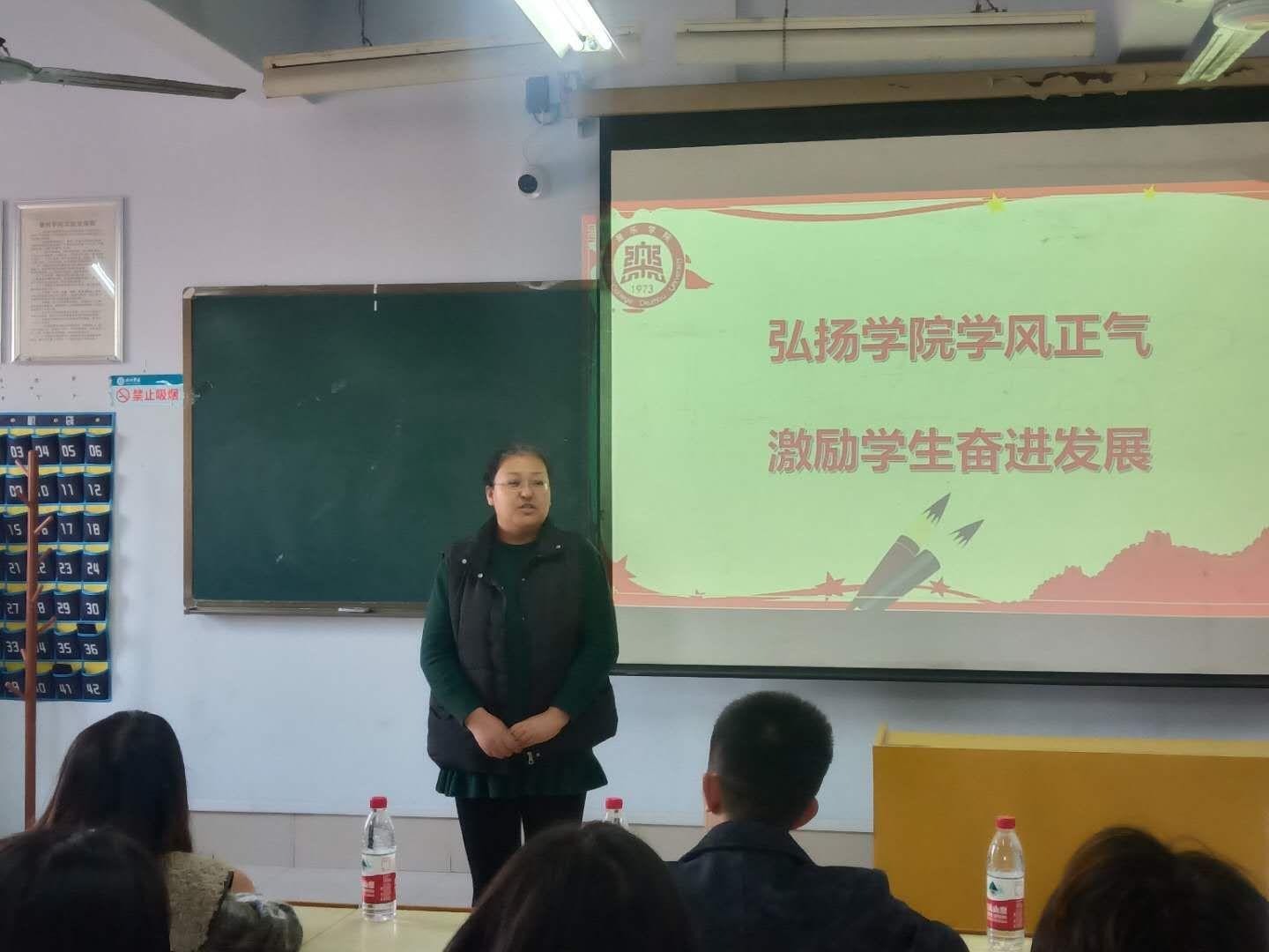 出席本次活动的有党委副书记米彦、团总支书记陈璨、21级辅导员禹亚辉。活动开始,先由主持人向大家介绍了本次活动的背景,然后由各级学生代表上台发言,代表依次讲解了自己对学风建设的理解,并承诺将会起好的带头作用,不迟到不旷课,诚信应考,拒绝舞弊。随后,进行学生代表上台签承诺书的活动。仪式最后,由党委副书记米彦对此次活动进行总结:她提出要多读书,读好书的倡议,学习不能仅局限于在学风建设月,更在日常,我们要树立终身学习的观念。