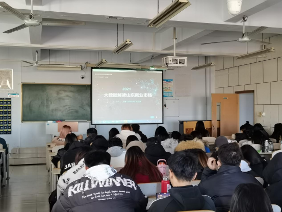 会议开始,齐鲁人才研究院尚方剑老师通过齐鲁人才网独家大数据,为同学们带来最新的就业形势分析。通过对不同学历、不同地区的秋招需求分析,解读山东省的招聘趋势,告诉同学们不断提升自身基本素质,充分引导同学们提升个人品牌,提升个人竞争力。此次主题活动对大学生了解当前就业形势、明确就业目标、增强就业技能有很大的帮助,为进一步提高个人竞争力及未来就业奠定良好的基础。