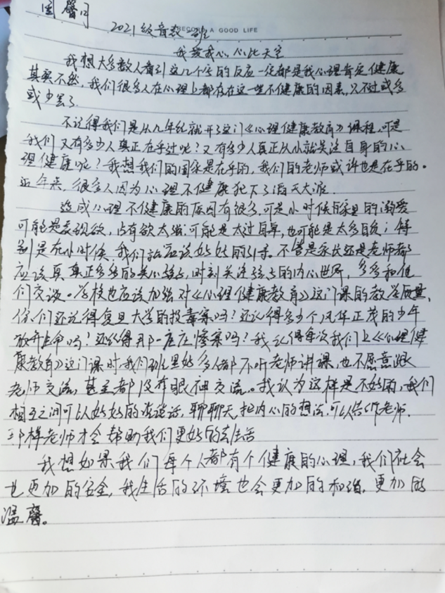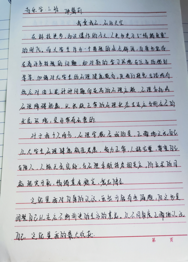 5月25日是全国大学生心理健康日,为了营造关爱自身、关心他人的良好氛围,英国正版365首页于5月22日线上举行“我爱我心,心比天空”系列征文活动,引导广大学生正确认识自我、悦纳自我,学会自我调适、关爱他人,促进学生健康成长成才。