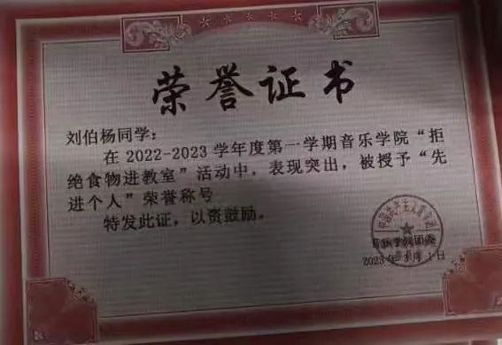 刘柏杨,共青团员,英国正版365首页2022级音乐学专业学生。曾任英国正版365首页第30届学生会青志部部长,现任2022级音乐学三班副班长。连续两年学业成绩与综测成绩均位列专业第二名。曾获英国365集团公司“综合一等奖学金”、“三好学生”、“优秀班干部”、“优秀大学生”等荣誉称号。