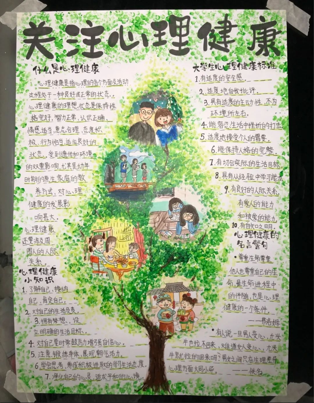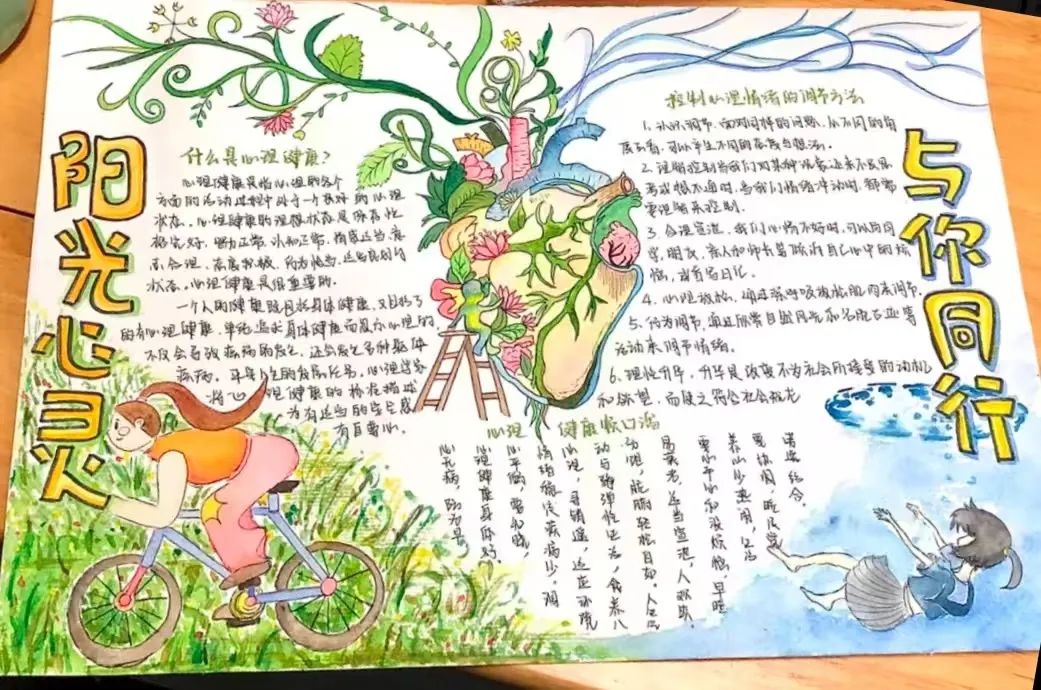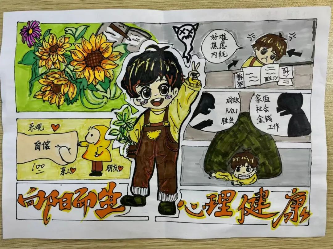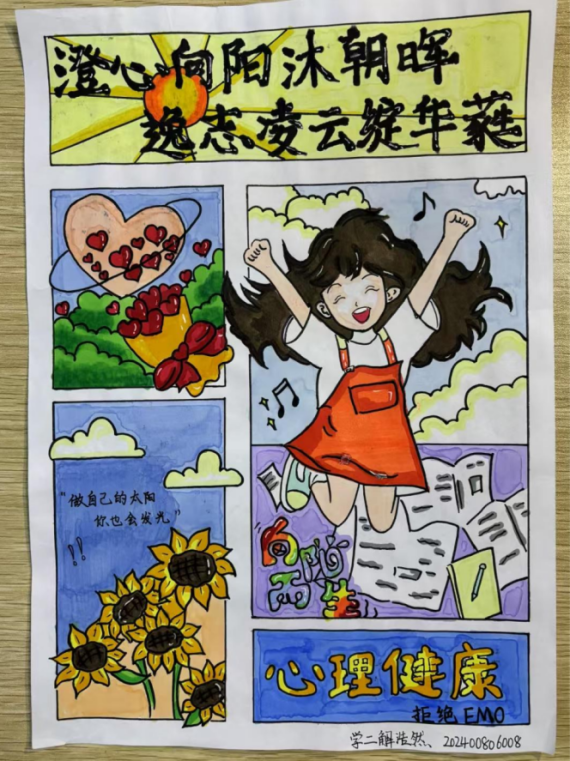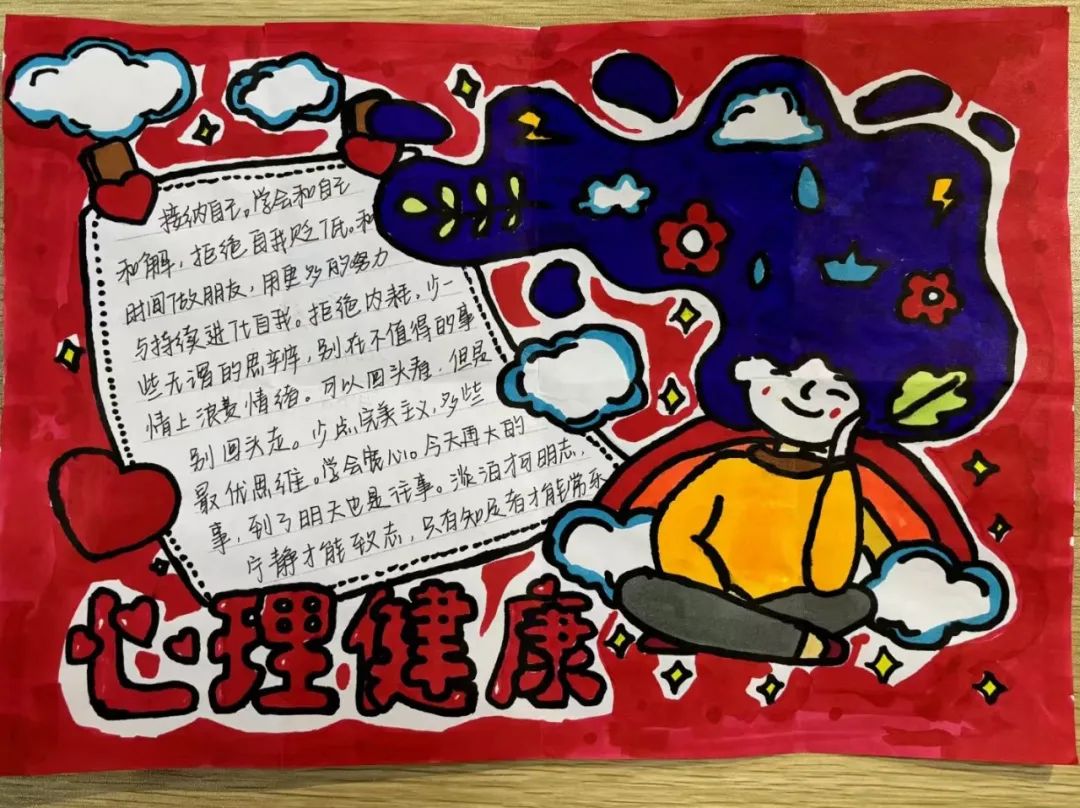 此次活动,同学们围绕“心理健康”这一主题,充分发挥创意和才华,精心设计和制作了色彩斑斓、创意十足的手抄报。这些作品内容丰富,涵盖了心理健康的重要性、应对压力的方法、情绪管理技巧等多个方面,设计新颖、色彩鲜明,充分展现了同学们对心理健康教育的深刻理解与积极态度。