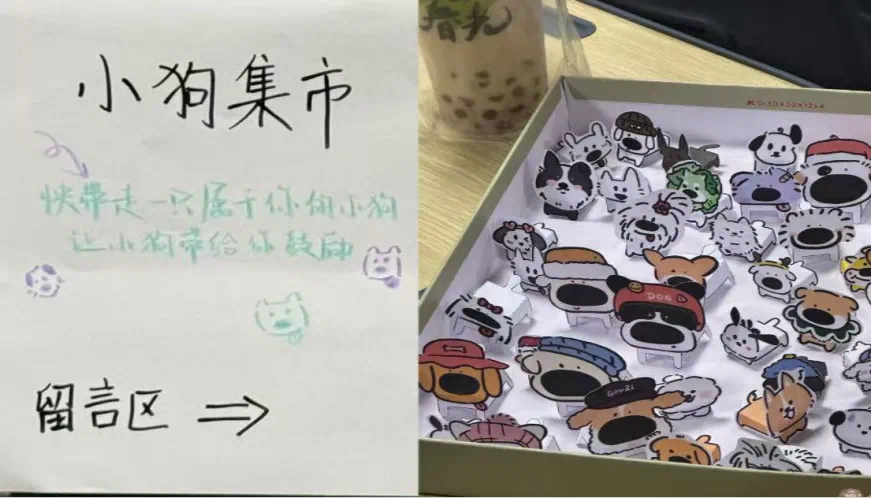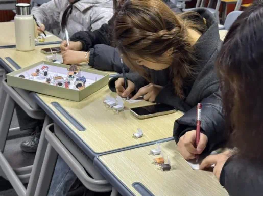 活动现场陈列着数十只造型各异的DIY纸艺萌宠,憨态可掬的柴犬、灵动俏皮的柯基等作品错落有致,每件作品都承载着制作者的情感寄托。参与者首先在特制便签上书写心事,将学习压力、成长困惑等情绪诉诸笔端,通过"以信换宠"的仪式感完成心灵减压。