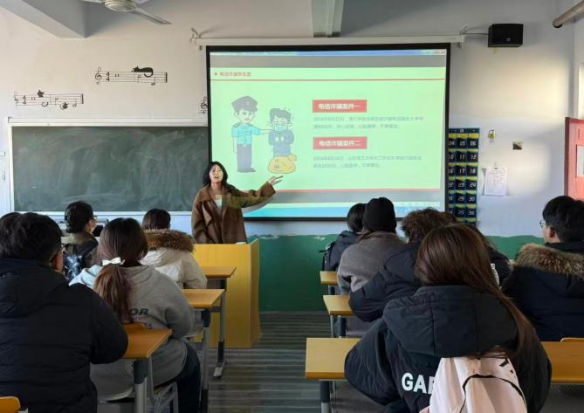 党委副书记深入2025级课堂一线,为学生开展“筑牢反诈防火墙,护航平安大学生涯”的专题辅导。讲座紧密结合近期高校发生的“冒充辅导员收费”、“虚假购物平台退款”、“游戏账号交易陷阱”等典型案例,深刻剖析诈骗话术的迷惑性与受害者的心理弱点,并讲解诈骗分子的作案手法与防范要点。班主任指导学生检查“国家反诈中心APP”的安装与预警开启情况,确保理论宣讲的实操性与针对性,使学生们对诈骗危害有了更切身的体会,防范意识得到显著增强。