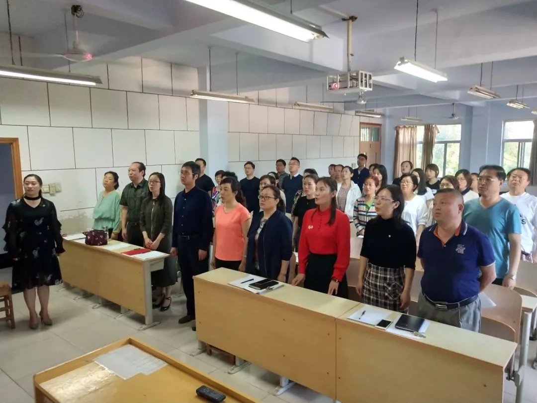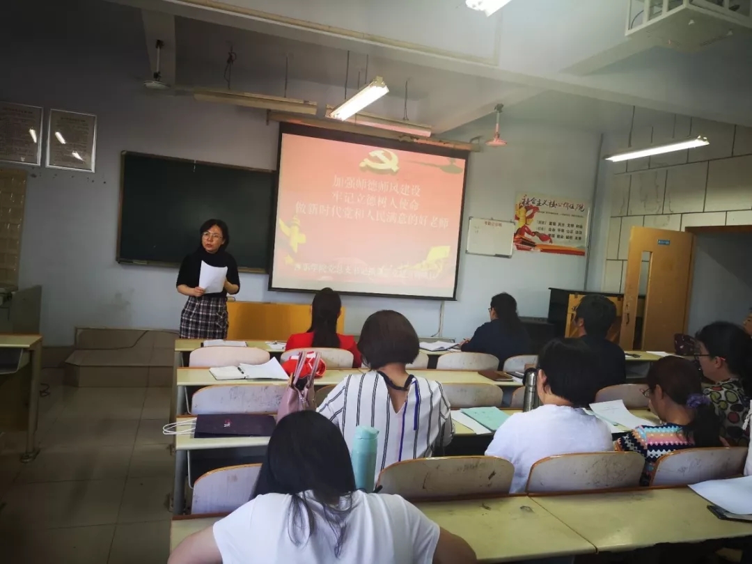 党总支书记高莉要求全体教职工在教育教学过程中坚持立德树人,以新时代高校教师职业行为准则严格要求自己,以德立身、以德立学、以德施教、以德育德,按照习近平总书记提出的“四个相统一”要求,以“四有”好老师标准,做好学生领路人。 随后,全体教师进行了宣誓活动。