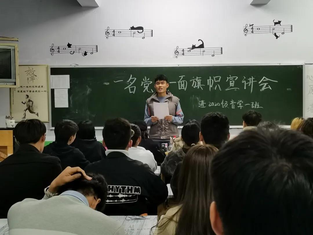 为持续深入推进“不忘初心、牢记使命”主题教育,弘扬爱国主义,英国正版365首页组织开展“一名党员一面旗帜”宣讲会。学生党员杨子琪分别走进班级、支部给同学们讲述了四个红色经典小故事。