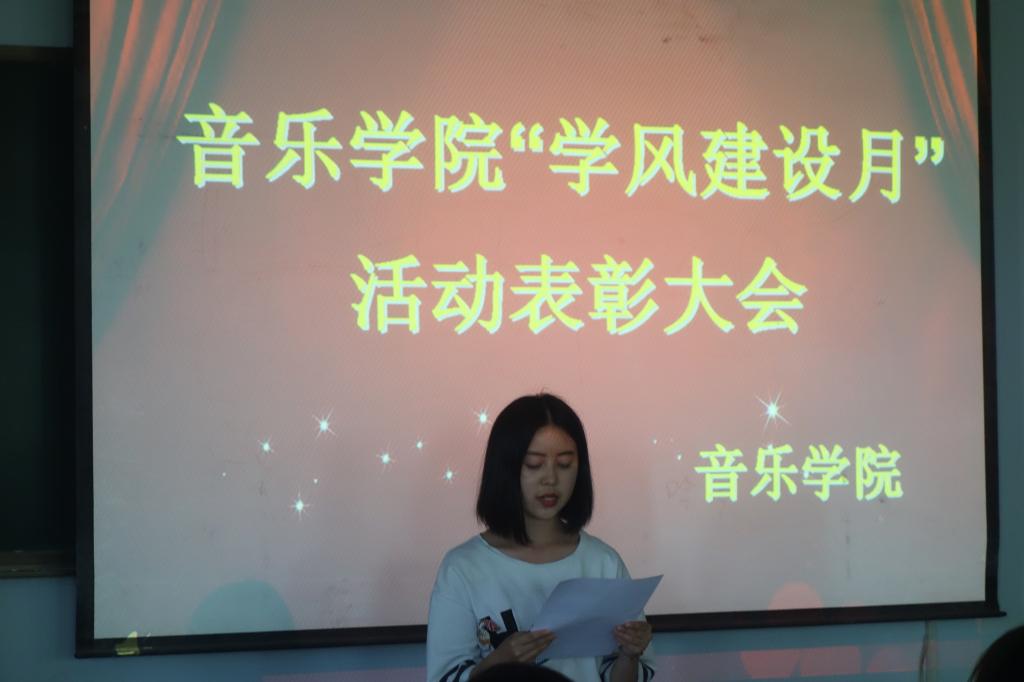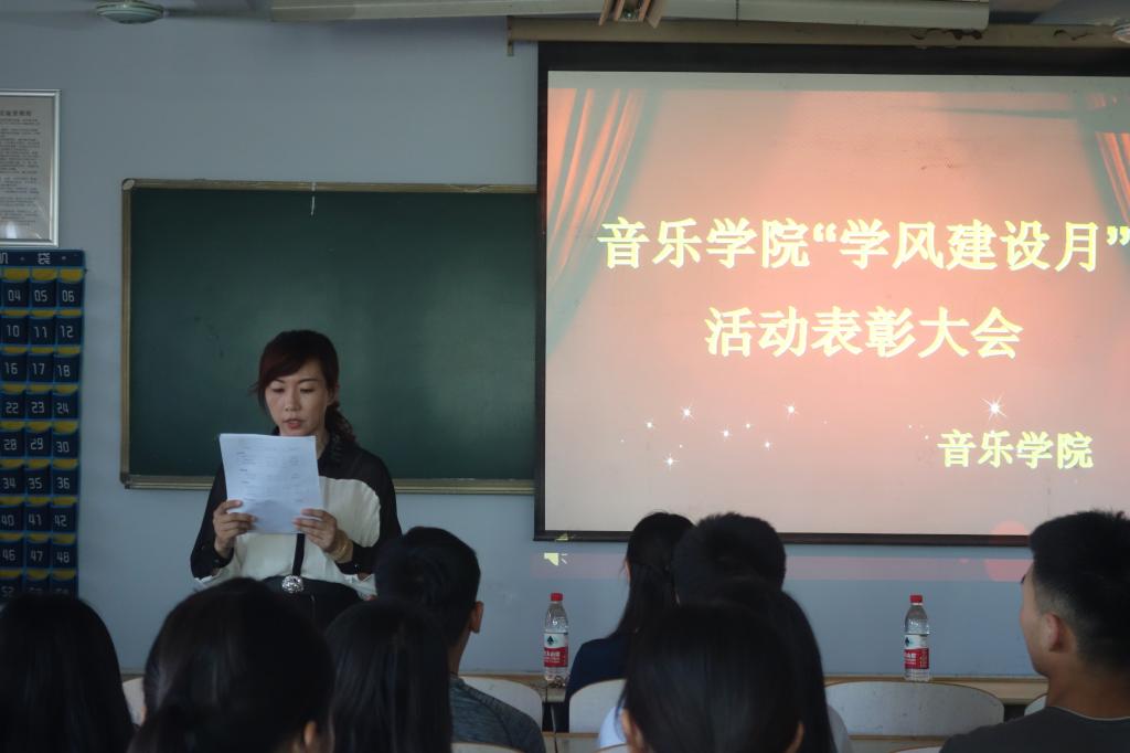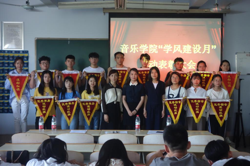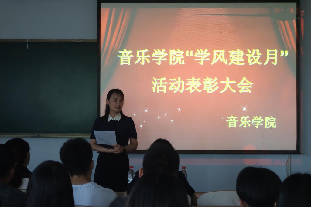 本次学风建设月共开展了“组织学习习近平总书记对当代青年的寄语以及习近平总书记系列讲话”、“英语趣配音”、“单词打卡”、“诗词大会”、“图书漂流会”及学生宿舍“断舍离”等多项丰富多彩、寓教于乐的活动,特别是围绕学风建设,结合音乐专业特色,开展了学风建设品牌特色创建活动——“音为梦想,谱写篇章”钢琴大赛。在总结大会上,各位老师对表现突出的先进个人和先进集体进行了表彰颁奖,党总支书记高莉进行了总结发言,要求全院上下牢固树立常抓不懈的思想,一方面要巩固“学风建设月”活动取得的成果,坚持在活动中的一些成功做法和经验;另一方面要把学风建设做为常项工作,长期抓,反复抓,以教风带学风,以管理育学风,以榜样树学风,以活动促学风,真正营造出“院风正、教风严、学风浓”的大氛围。