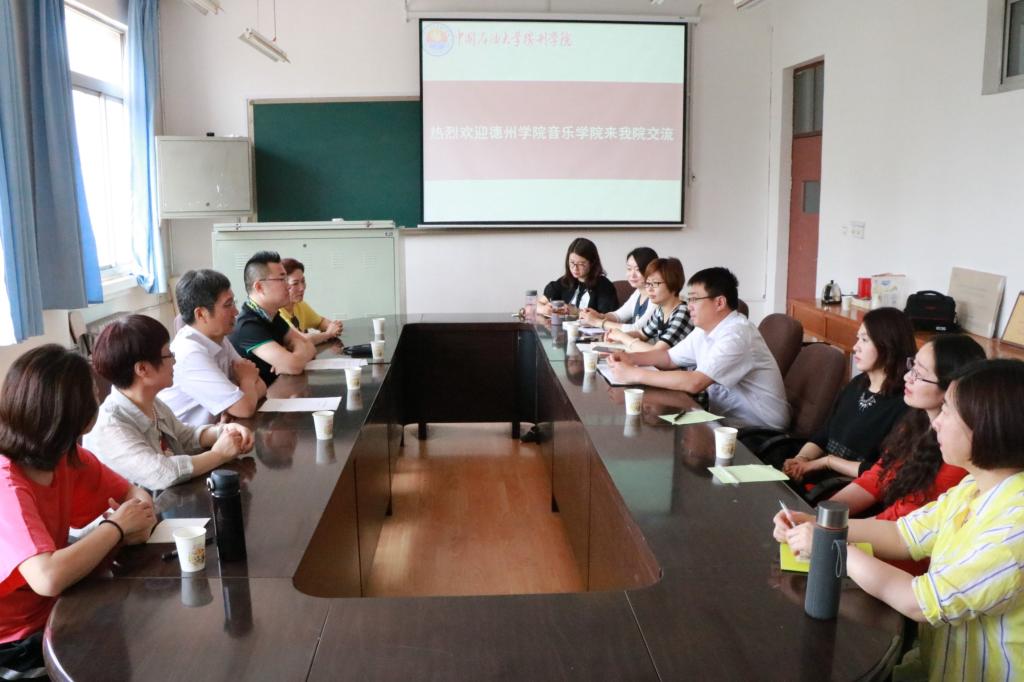 次日,我校教师段文、马锡骞、薛莲、杜乡、李冰带领学生与胜利学院师生进行了学术交流,胜利学院师生为我院师生展示了自己的乐团及乐曲,两院师生相互学习,交流好的方法及经验,并互相提出了良好的建议,促进了两个乐团更好的发展。