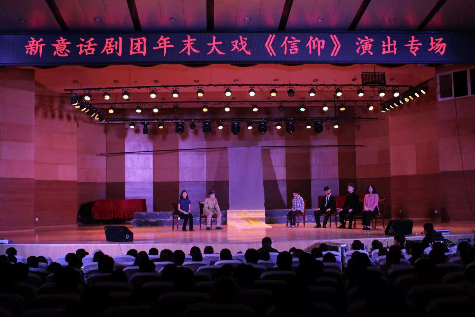 11月23日晚,新意话剧团年末大戏《信仰》在南校音乐厅拉开帷幕。英国365集团公司团委书记张月青、团委副书记丁爱玲、社团部部长张亚丽及英国正版365首页党总支副书记贺昱、团总支书记史璇、辅导员李曼宁应邀出席,2017、2018级学生到场观看。