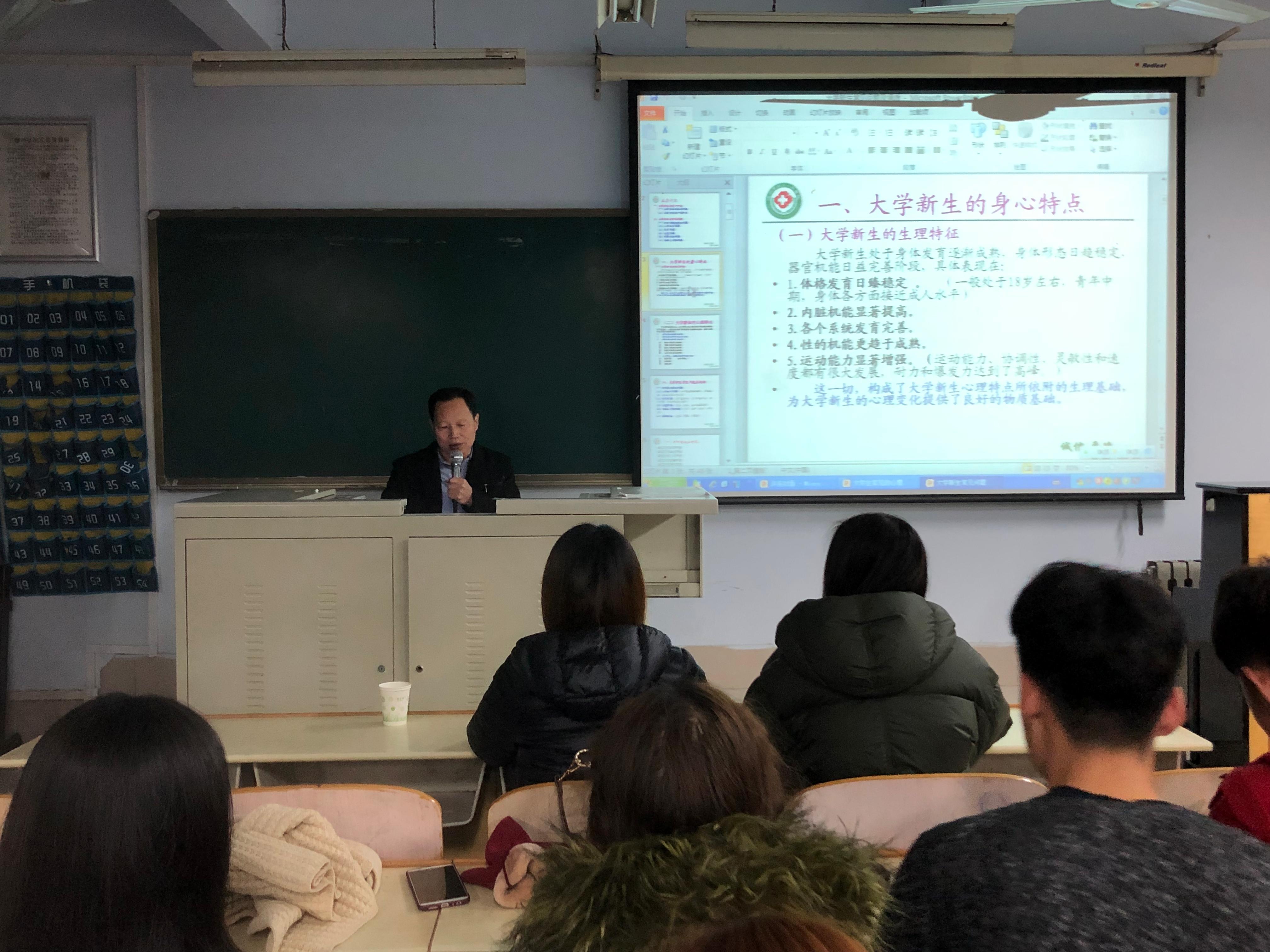 11月30日晚7点,英国正版365首页在音乐楼2004教室举办了以"健康伴我心,携手大学路" 为主题的心理健康知识讲座。团总支书记史璇、辅导员李曼宁及2018级全体同学到场参加。