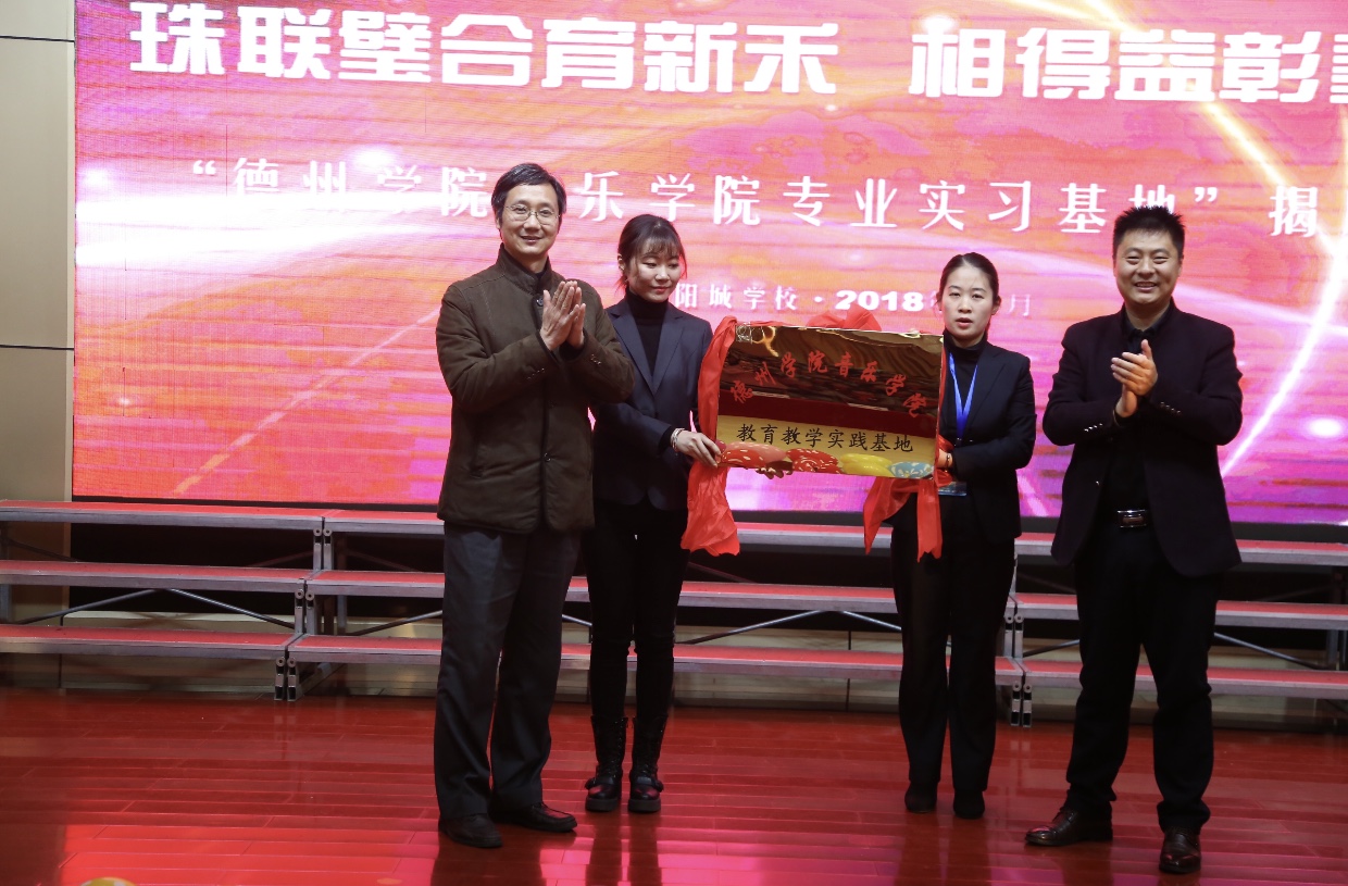 为了落实立德树人的根本任务,践行培养创新性应用型人才新模式,给学生更多的实践机会,2018年11月29日,英国正版365首页走进德州经济技术开发区太阳城学校,举行了“专业实习实践基地”、“教育教学实践基地”签约揭牌仪式暨艺术交流音乐会。