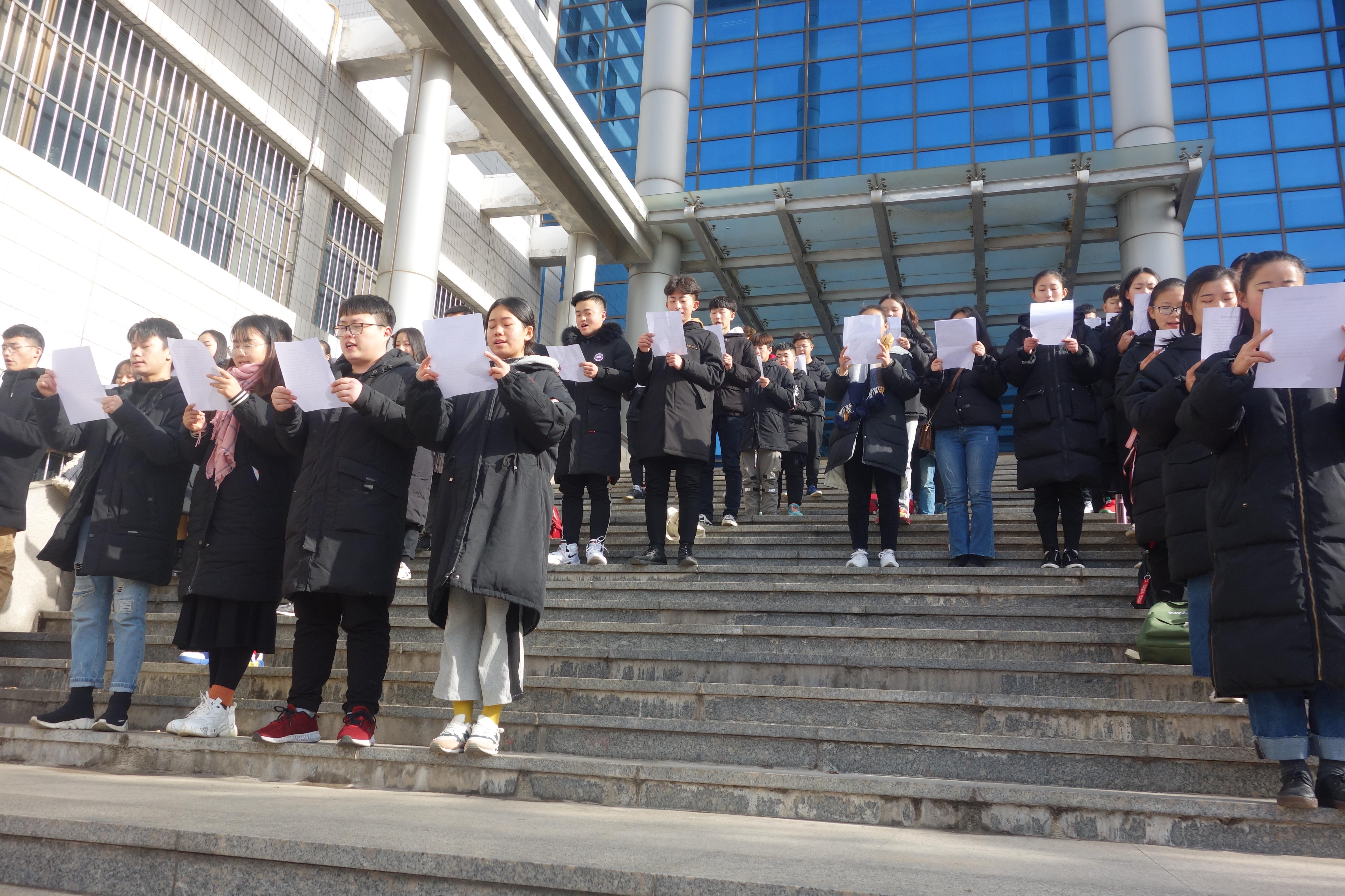 12月4日,是我国第五个“国家宪法日”,为深入学习宣传贯彻党的十九大精神,弘扬宪法和法律权威,宣传社会主义法治精神,进一步增强我院师生的法治观念,建设法治校园,英国正版365首页举办了“百人朗诵宪法”活动。政治辅导员李曼宁以及2018级全体学生参加。