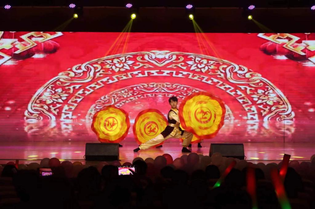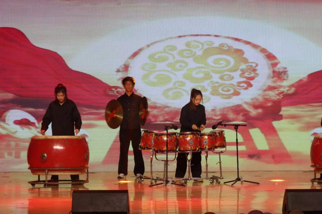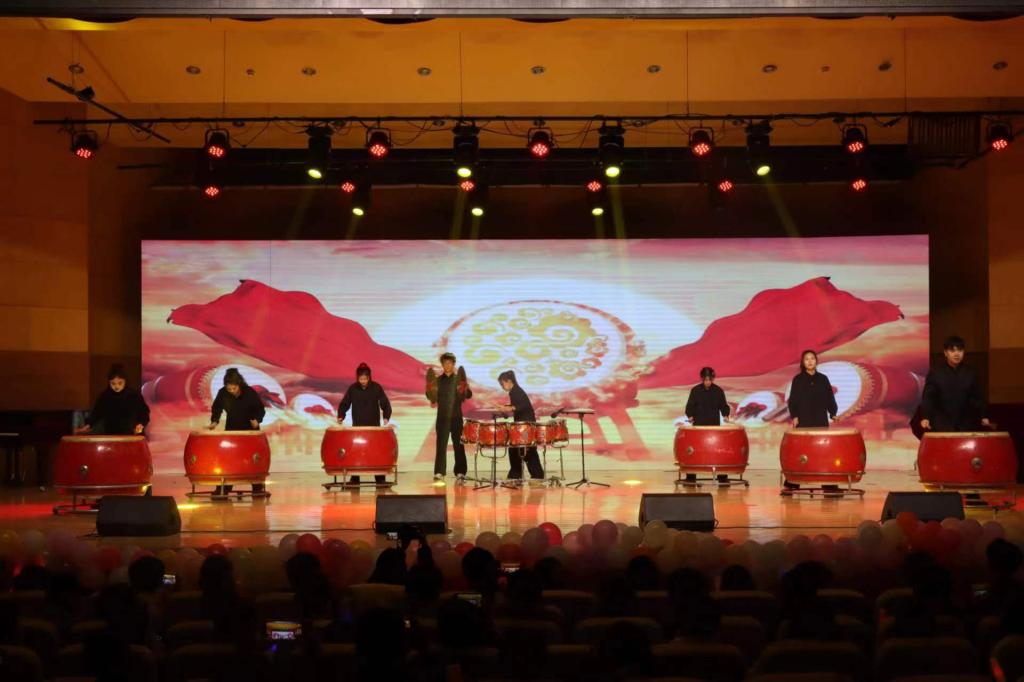 鼓乐团带来的节目《龙腾虎跃》乐曲情绪炽热,民族风格浓厚,表现了人民龙腾虎跃,奋勇前进的风貌,大家随鼓乐声开启了这欢腾之夜。
