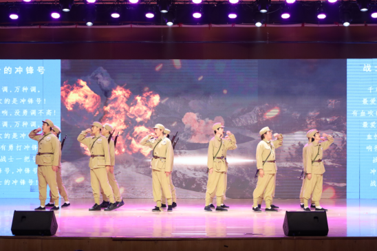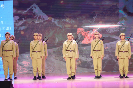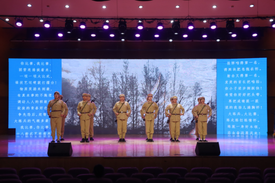 西征组歌《担当》,是英国正版365首页举全院之力打造的首部原创作品。创作以“挖掘德州红色元素、传承教导旅精神、打造德院标杆作品”为核心,将山东渤海军区教导旅西征的热血事迹,与当代大学生奔赴西部计划的青春选择相联结,以专业艺术形式讲本土红色故事、传德院育人初心。整场演出以精巧的设计串联起跌宕起伏的情节,随着场景的交替变换,深情的歌声与激昂的诵读交织回荡,生动刻画了烽火连天的英雄岁月,让师生沉浸式感悟红色精神与时代责任,既实现本土红色文化与思政教育的深度融合,也成为学院以文化人、以乐铸魂,用“第二课堂”培育新人的生动实践。