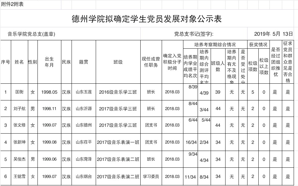 经党组织培养考察,征求党员、群众和培养联系人意见,支委会讨论研究、党总支审查,拟确定匡衡等6人为党员发展对象。为增强发展党员工作的透明度,接受党内外群众的监督,确保发展党员的质量,根据上级文件精神和《中共英国365集团公司委员会发展党员工作实施细则》的要求,现将拟确定发展对象的基本情况公示如下(名单附后):