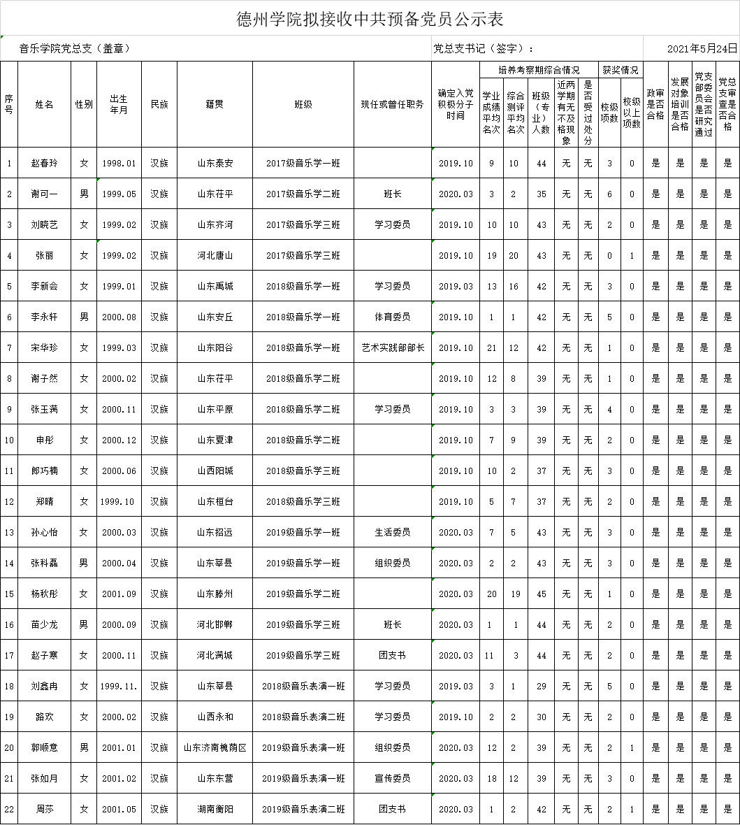 经党组织培养考察,征求党员、群众和培养联系人意见,支委会讨论研究、政治审查、集中培训、党总支审查,拟接收赵春玲等22名同志为中共预备党员。为增强发展党员工作的透明度,接受党内外群众的监督,确保发展党员的质量,根据上级文件精神和《中共英国365集团公司委员会发展党员工作实施细则》的要求,现将拟接收预备党员的基本情况公示如下(名单附后):