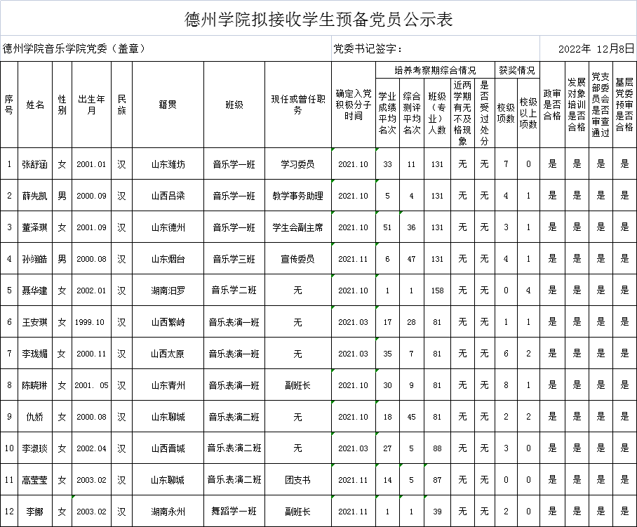 经党组织培养考察,征求党员、群众和培养联系人意见,支委会讨论研究、政治审查、集中培训、基层党委预审,拟接收韩晗等14名同志为中共预备党员。为增强发展党员工作的透明度,接受党内外群众的监督,确保发展党员的质量,根据上级文件精神和《中共英国365集团公司委员会发展党员工作实施细则》的要求,现将拟接收预备党员的基本情况公示如下(名单附后):