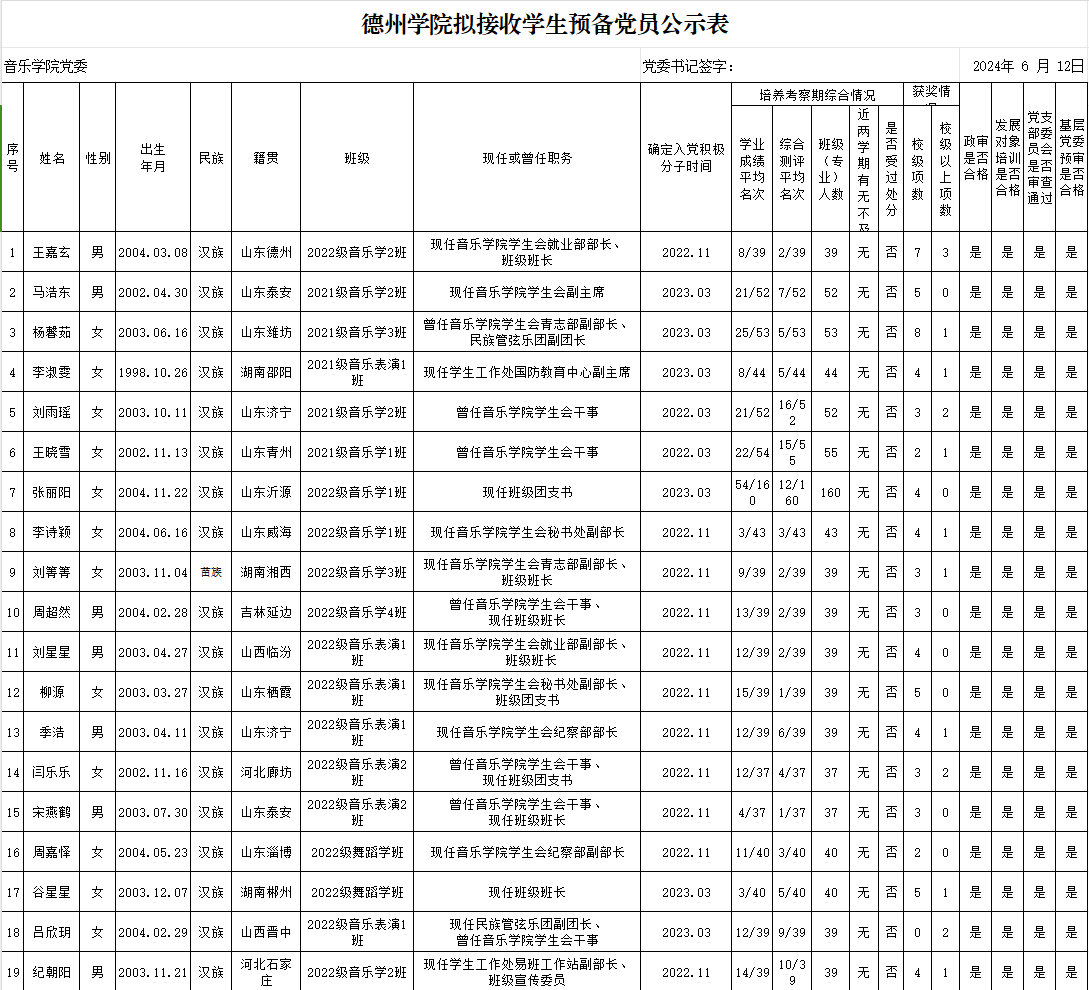 经党组织培养考察,征求党员、群众和培养联系人意见,支委会讨论研究、政治审查、集中培训、基层党委预审,拟接收乔云等20名同志为中共预备党员。为增强发展党员工作的透明度,接受党内外群众的监督,确保发展党员的质量,根据上级文件精神和《中共英国365集团公司委员会发展党员工作实施细则》的要求,现将拟接收预备党员的基本情况公示如下(名单附后):