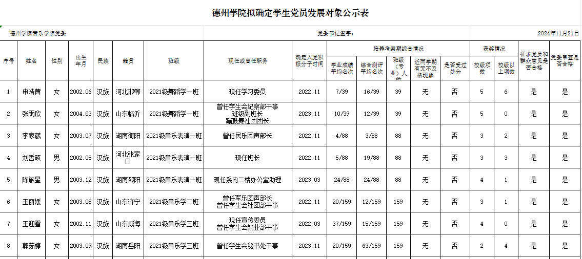 经党组织培养考察,征求党员、群众和培养联系人意见,支委会讨论研究、党委审查,拟确定申浩茜等19人为党员发展对象。为增强发展党员工作的透明度,接受党内外群众的监督,确保发展党员的质量,根据上级文件精神和《中共英国365集团公司委员会发展党员工作实施细则》的要求,现将拟确定发展对象的基本情况公示如下(名单附后):