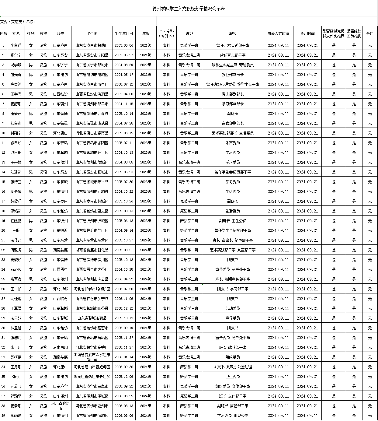 确定入党积极分子公示公告