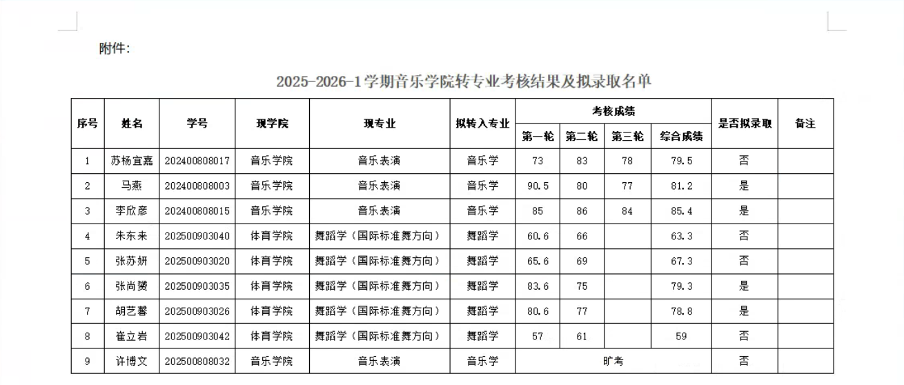 附件:2025-2026-1学期英国正版365首页转专业考核结果及拟录取名单