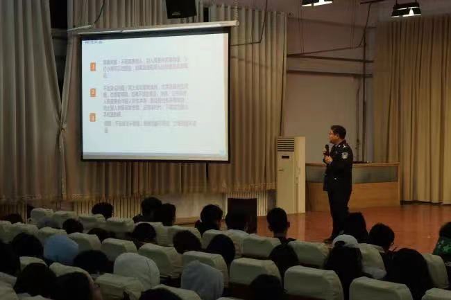 会上,娄警官从电信诈骗的常见形式、手段和特点等方面出发,结合典型案例“以案说法”,让同学们了解发生在身边的诈骗陷阱,对如何防范各类诈骗以及当前的反诈形势等内容进行了深入讲解,提醒同学们不可随意点击和转发不明链接,做到“不轻信、不透露、不转账、及时报警”。同时,结合近年来发生在校园中的“帮信”犯罪典型案例,为同学们讲解了大学生犯罪的原因及犯罪后对个人、家庭、社会所带来的严重后果,引导在校学生树立正确的世界观、人生观和价值观,自觉抵制各种不良行为,并倡导同学们要把在校期间学习到的防范电信网络诈骗知识告诉自己的身边人,共同筑牢全民反诈防线。