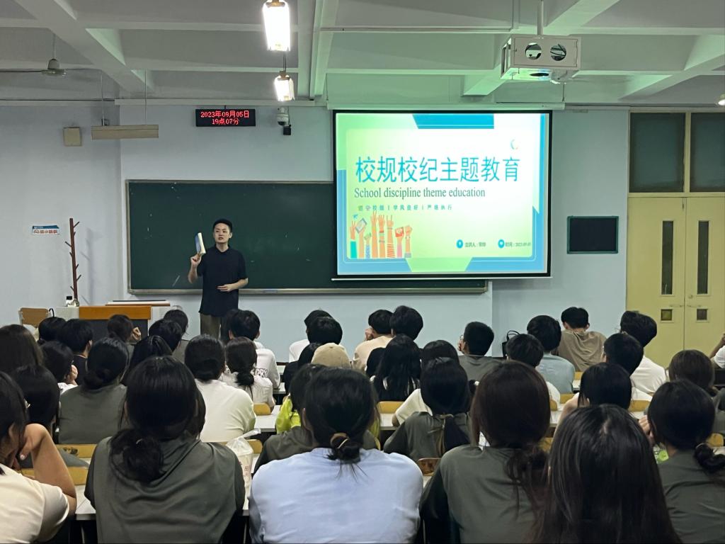 为增强2023级新生对学校管理规定的了解,提升遵纪守法意识,学习约束自身言行举止,英国正版365首页于2023年9月5日在5-0201、5-0202教室开展校规校纪教育专题讲座。此次活动由2023级新生辅导员宋老师主讲。
